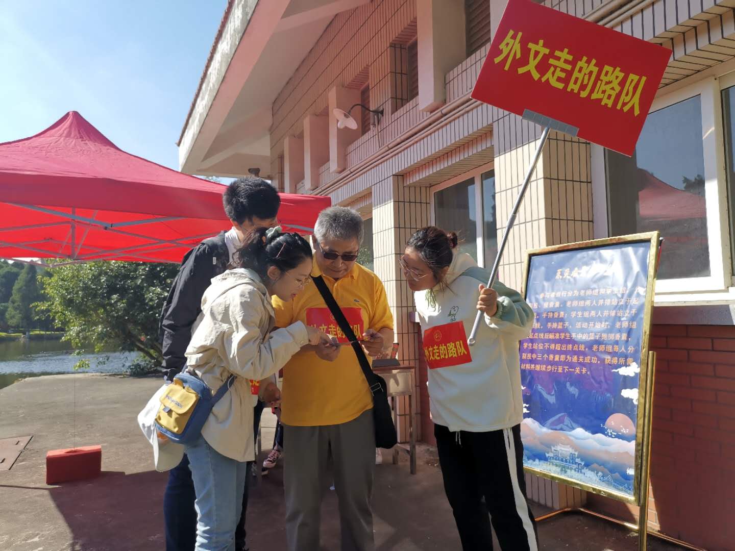 重阳佳节,最宜登高望远、踏秋赏菊。在本次“我们的节日•重阳”主题系列活动中,学校在健步走的基础上,精心设计了定向越野活动。外文学院专门邀请到了退休教师张礼龙、苏清辉与2020级新生们组队,共同参加了此项活动。两位老师分别率领“外文走的路队”与“外文方向队”从三家村学生广场出发,在重阳秋色的陪伴中一路向前、通关打卡。两支队伍先后抵达诗词接龙、习俗问答、抛掷香囊、放飞风筝、风车轻旋等通关点,参与了一系列丰富多彩的民俗文化游戏。师生密切合作,现场笑声不断,不仅弘扬了尊师重道、敬老爱老的中华优秀传统文化,也更拉近了老教师与青年学生之间的距离。