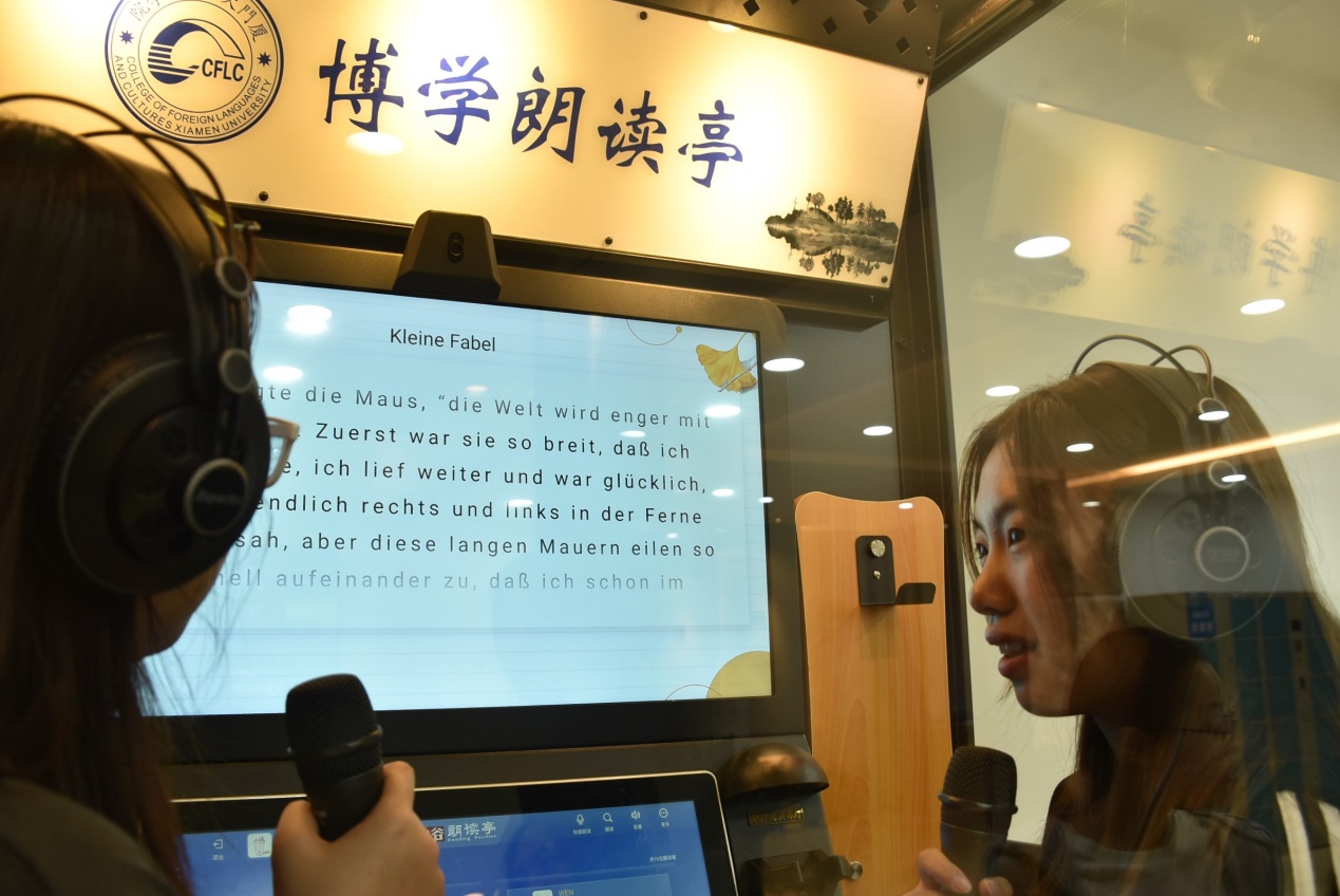 随着《朗读者》的热播,董卿带着“朗读城市”走进厦门,掀起一股朗读的热潮。为进一步展现书香校园之美,满足大家读书的热情,提供多样化的朗读方式,外文学院结合专业特色、人才培养需求,将 “博学朗读亭”引进校园。近日,“博学朗读亭”已在基金楼一楼大厅与大家见面,正式投入使用。