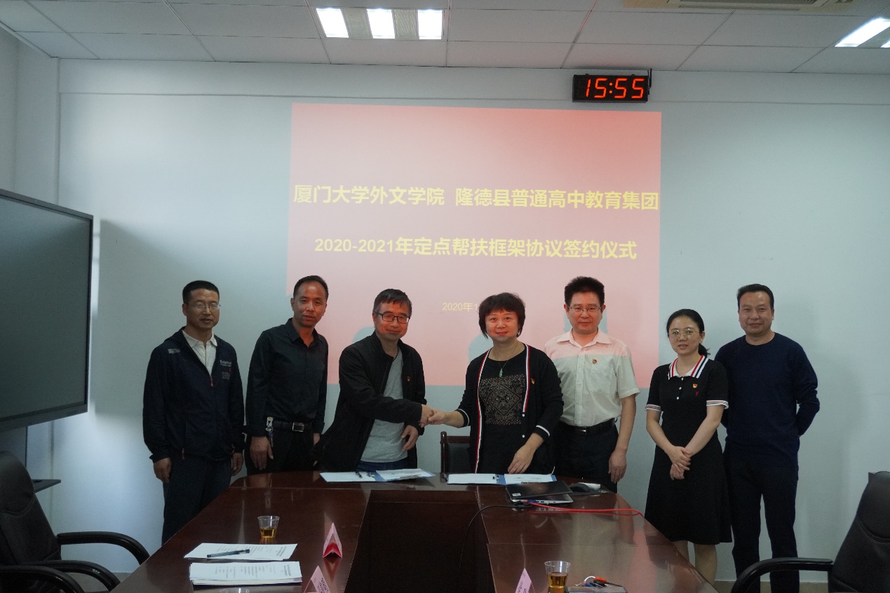 随后,徐琪副院长与马俊明副书记、副校长签订了厦门大学外文学院与隆德县普通高中教育集团 2020-2021年定点帮扶框架协议。