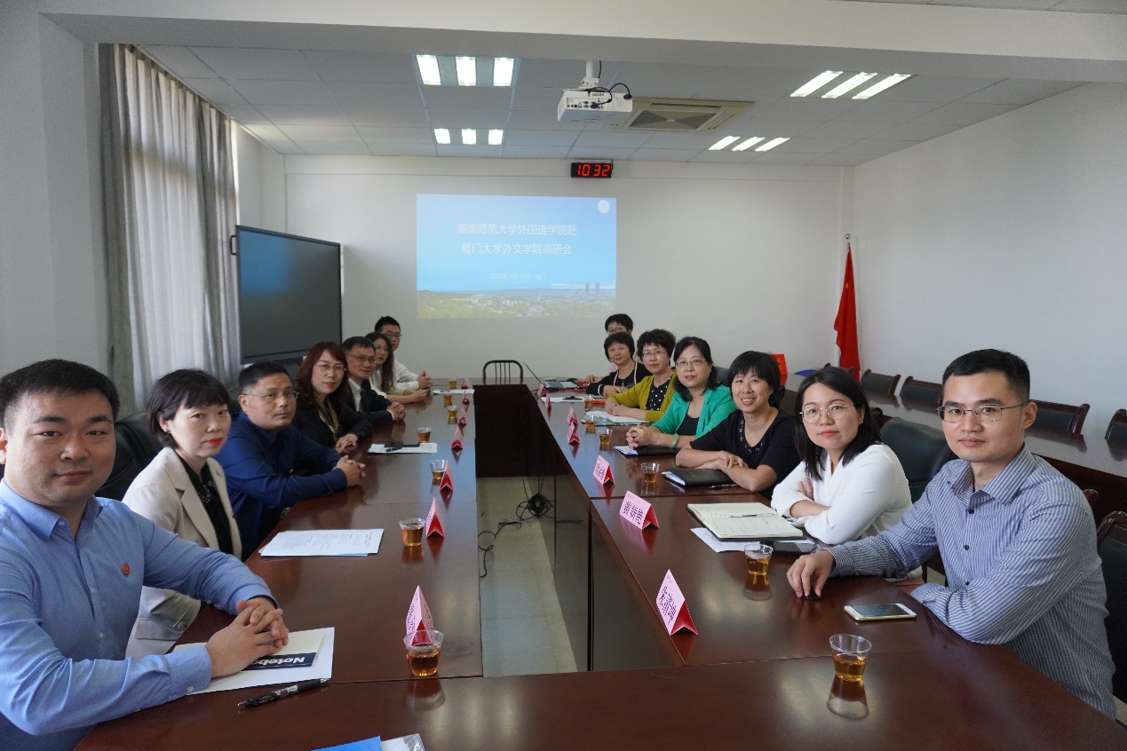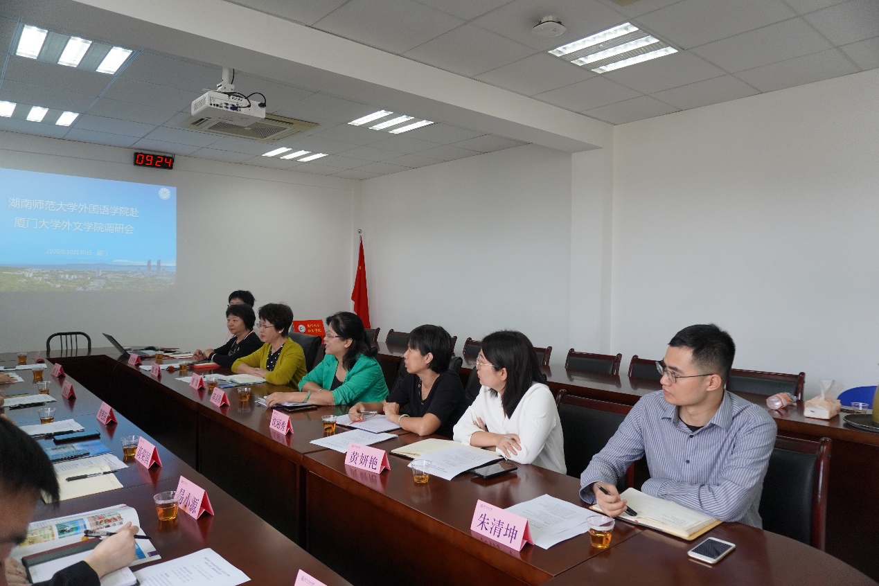 参加此次调研会的还有湖南师范大学外国语学院副院长高荣国、湖南师范大学外国语学院研究生办公室主任易小源、湖南师范大学外国语学院教务办公室主任刘蓉、湖南师范大学外国语学院学生工作办公室主任张元强、湖南师范大学外国语学院科研办公室主任孔杰、厦门大学外文学院党委副书记沈丽秀、厦门大学外文学院副院长徐琪、厦门大学外文学院教学实验中心主任黄妍艳、厦门大学外文学院人事秘书魏小静、厦门大学外文学院科研秘书朱清坤。