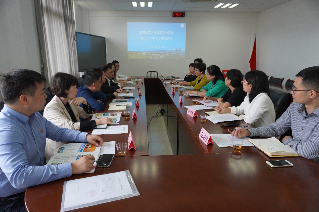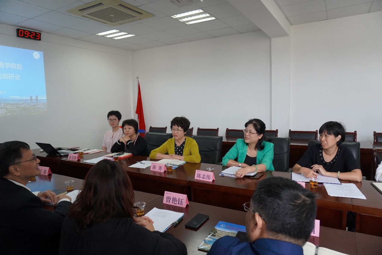 会上,陈志伟书记及陈菁院长首先对湖南师范大学外国语学院调研组的到来表示热烈欢迎,并希望通过本次调研会让双方经验交流更加紧密,共话“双一流”建设和创新发展举措。