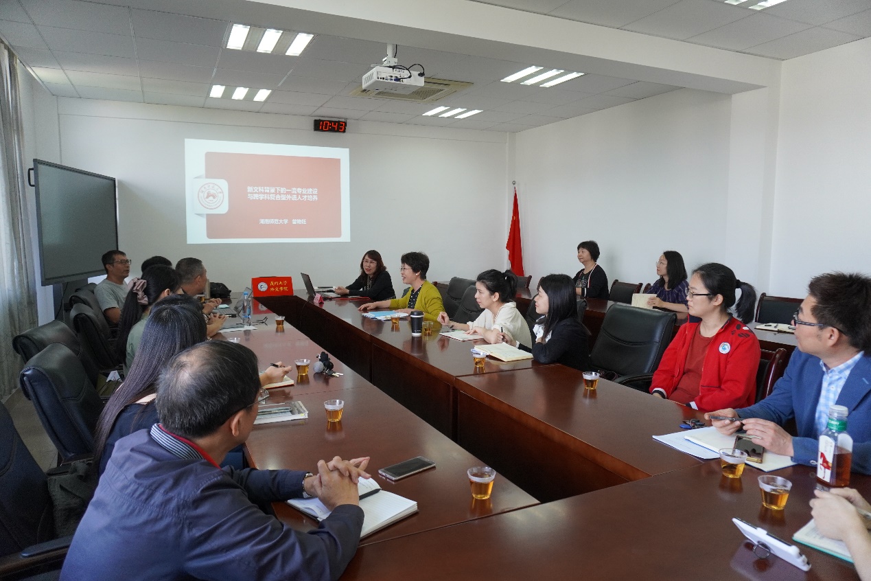 10月30日上午,湖南师范大学外国语学院曾艳钰院长、唐建文书记一行莅临外文学院开展调研,并在德贞楼524会议室举行集体交流座谈,外文学院党委书记陈志伟、院长陈菁等出席会议。
