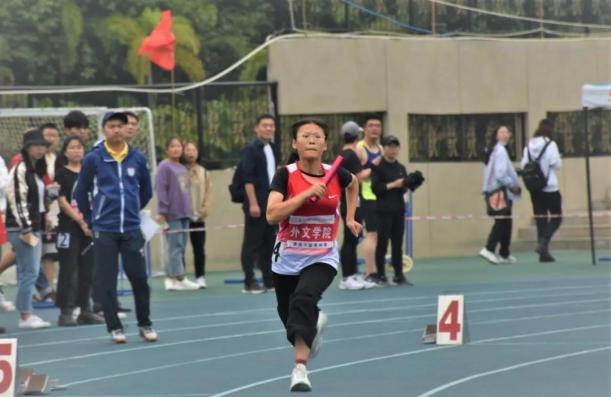 运动场上,除了亮眼的个人表现,团结合作的光芒也熠熠生辉。本科生女子4×400接力的比赛中,由2018级英语专业杨祉祺、2020级俄语专业贾雨晨、2020级英语专业王可和2020级法语专业潘雨薇组成的外文代表队团结协作、配合默契。发令枪响,奋力向前的身影是她们拼搏进取的青春活力;交接棒时,她们递出的更是自己满腔的热血和相信的力量。前三棒王可、贾雨晨、杨祉祺健步如飞,交棒完美,第四棒潘雨薇更是不负众望,连超三名对手,最终取得了团体第八名的好成绩。