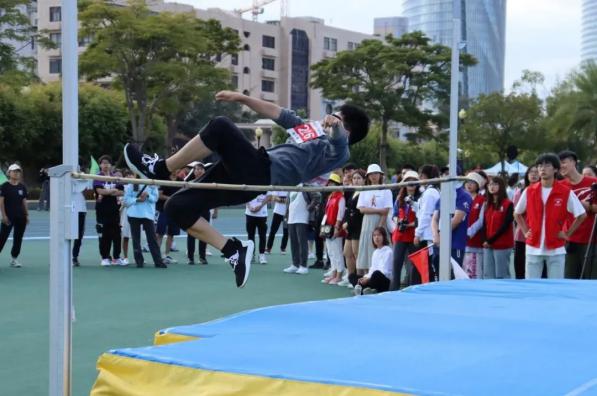 将目光投向演武场上的跳远场地——离弦似的助跑、穿云般的起跳,运动健儿们沉着镇静,稳定发挥,一次次跃起的身姿尽显青春风采。而跳高场上的运动员们表现也同样精彩,他们腾空一跃,势以步月登云,他们满怀激情,不断挑战自我,这便是属于外文人的风采。