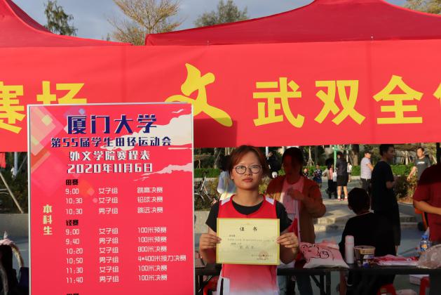 11月6日至7日,厦门大学第55届学生田径运动会、第29届老年人体育健身大会在思明校区天的激烈角逐中,外文运动健儿们斗志昂扬、齐心协力、奋勇拼搏,载着满满的收获为本届运动会上画上了圆满的句号。