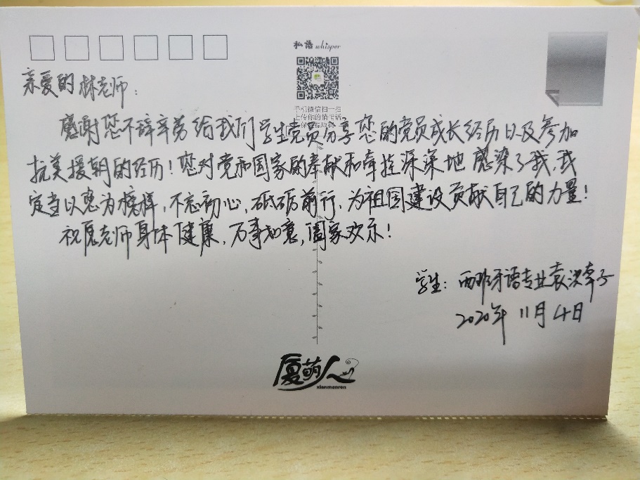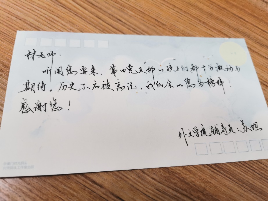 本科生第四党支部党员们为林湘玲教授赠送明信片