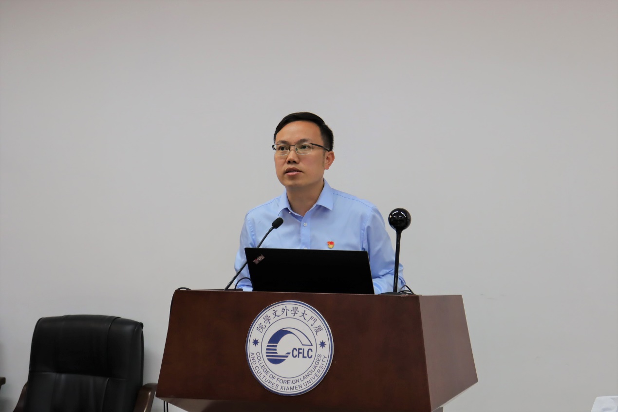外文学院党委书记陈志伟在讲话中强调,学院领导班子高度重视课程思政建设,全院教职员工一定要充分认识课程思政的重要意义。落实立德树人根本任务,必须将价值塑造、知识传授和能力培养三者融为一体,坚持以政治为引领,以课程建设为依托,发挥各类课程育人作用,聚集合力把课程思政推向深入,推进全员全过程全方位育人,努力形成“课程门门有思政,教师人人讲育人”良好氛围。