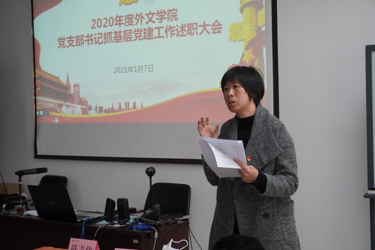 1月7日上午,我院党支部书记抓基层党建工作述职会在德贞楼319顺利召开。会议由外文学院党委副书记沈丽秀主持,学院党委书记陈志伟,校基层党建工作联络员黄定基,学院工会、团委、妇委会负责人,院关工委负责人,辅导员、党务秘书、组织员,各党支部书记,部分支委代表、校第十一次党代会代表、民主党派代表和师生代表列席本次会议。