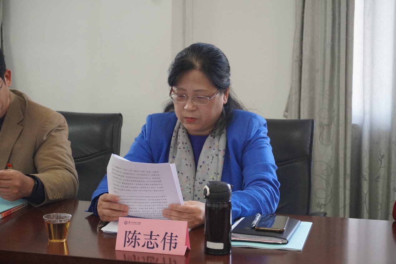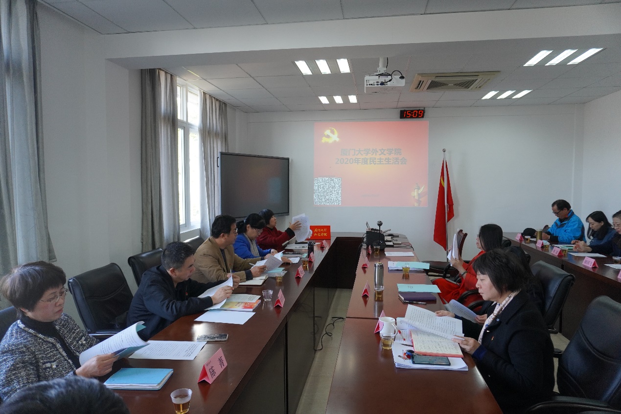 1月15日下午,外文学院在德贞楼524会议室顺利召开2020年度民主生活会,紧扣主题进行对照检查,开展批评和自我批评,明确整改方向和措施。校第五督导组副组长、教育研究院党委委员校党委组织部副部长乔连全,校纪委委员、体育教学部党委书记郑树东,校第五督导组联络员袁愉年参会指导。,外文学院党委书记陈志伟,党委副书记沈丽秀,党委委员、副院长徐琪、辛志英出席了会议,学院党外领导干部院长陈菁、副院长李美华应邀列席会议,列席会议的还有和各系部正副主任列席会议、工会主席、院办主任等。会议由陈志伟主持。