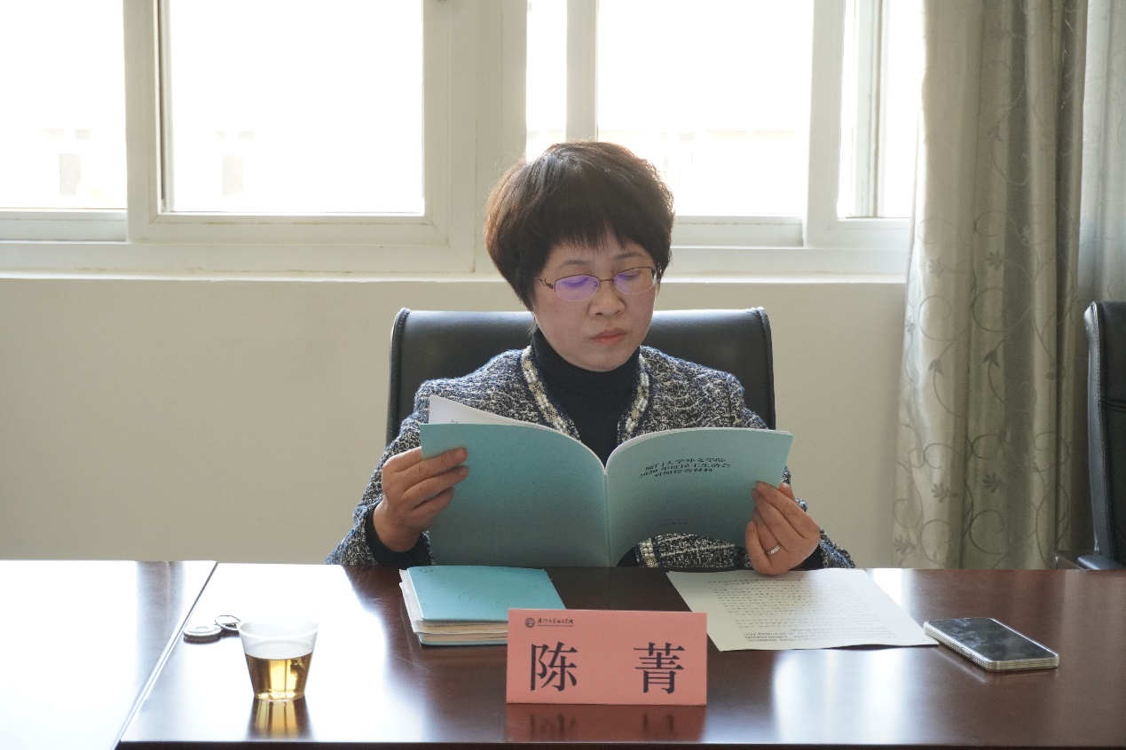 外文学院院长院长陈菁在讲话中谈到应邀发表意见。她表示,,外文学院党员领导干部是有立场、有坚持、有信念、讲奉献的一支队伍,党政齐心协力合作得非常和谐推动,外文百年外文学科的振兴与发展需要每一个人的付出,,希望在今后的工作中能够更多的领导班子成员能够站在学院的角度进一步提高大局意识思考问题,超越小我、奉献大我。