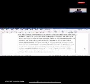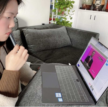我作为学习委员,开课前协助任课老师、辅导员及教学秘书收集学生信息、协调教学调度,我感受到大家的团结一心。今天教学流程同往常一样,老师通过屏幕分享讲解语法和单词。进入课文朗诵环节,大家通过语音分组实时对话,与传统教学不同的是,我们可以在耳机里听到自己的声音。这样不仅有老师进行实时纠正,我们自己也能清楚地意识到自己发音上的不足。由于每一个人都用心投入、实时反馈,课堂效率与教学质量都得到了充分保障。