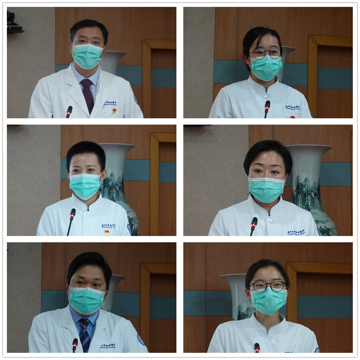 此次报告会共邀请6名一线医务人员和家属讲述战“疫”先进事迹。报告会上,附属翔安医院感染科副主任医师、援鄂医疗队临时党支部书记、队长陈先礼,急诊医学科护师张楠,肝胆外科主管护师马鑫,手术室主管护师赵卓尔,麻醉科主治医师钟强,手术室护师陈秋梅先后作报告。