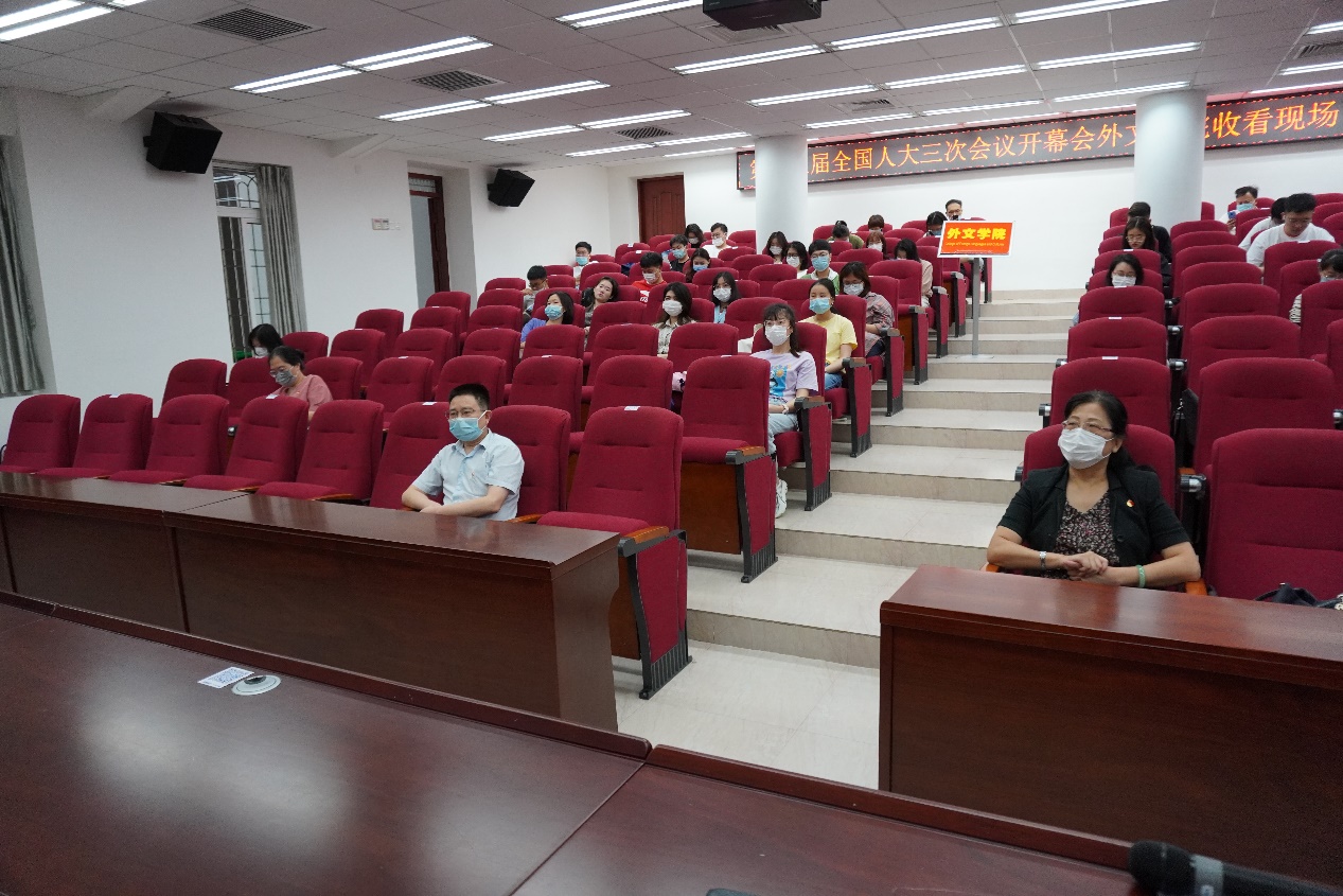 5月22日上午,十三届全国人大三次会议在北京人民大会堂开幕,国务院总理李克强作政府工作报告。外文学院党委书记陈志伟,党委副书记杨云良,副院长李美华、吴光辉和师生代表在南光三112报告厅集中收看大会开幕盛况,第一时间了解政府工作报告内容。