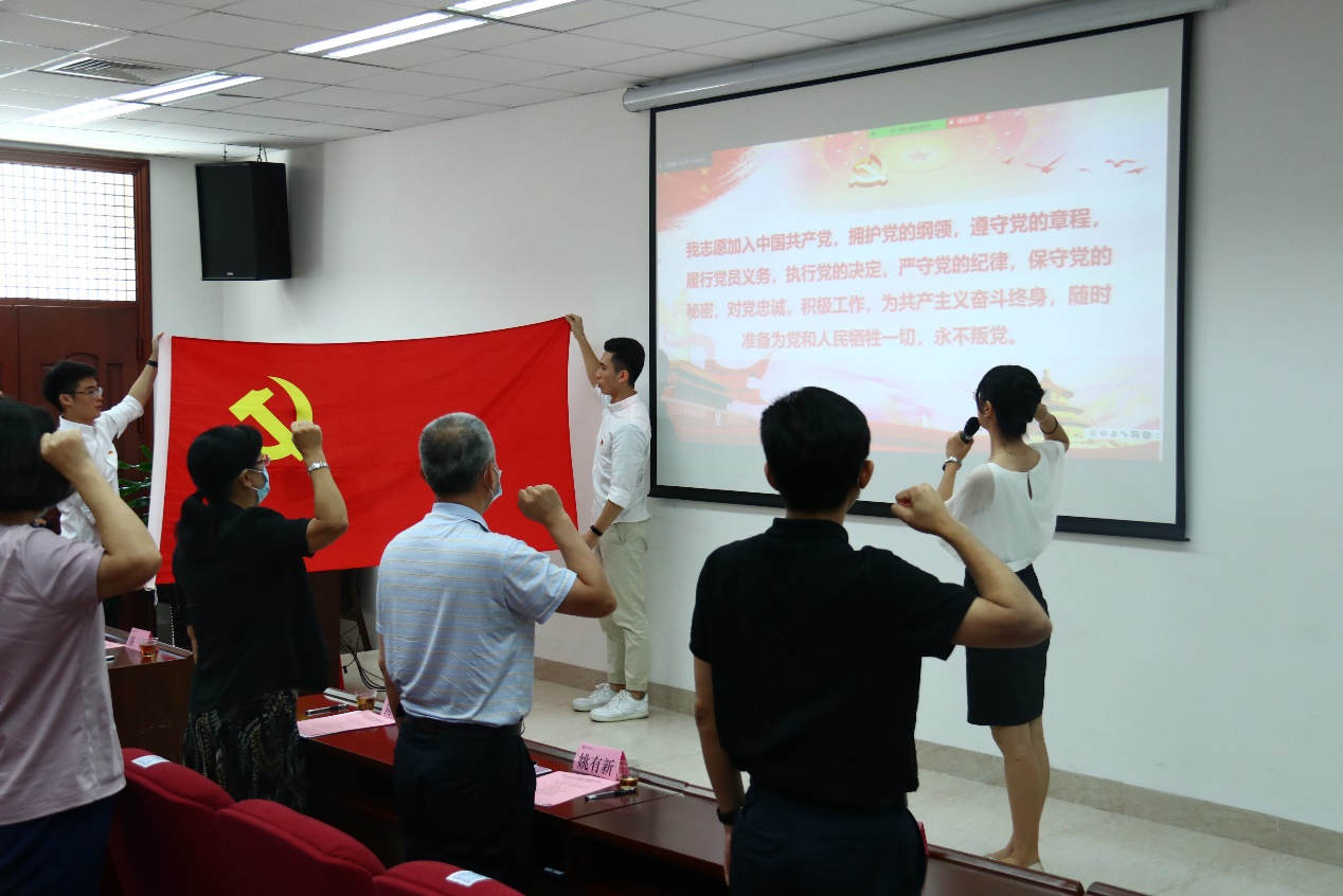 与会党员重温入党誓词