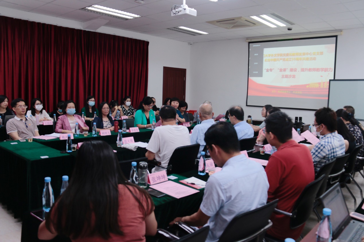 7月3日下午,外文学院党委和教师发展中心党支部在德贞楼319举行庆祝中国共产党成立99周年共建活动。活动以一流党建引领和保障一流本科建设为主线,围绕着“探索‘金专’‘金课’建设,提升教师教学能力”这一主题,进一步统一思想,凝聚共识,为促进一流学科建设发展添彩助力。外文学院党政领导班子部分成员,系部主任、副主任,教工党支部书记,中青年教师,教师发展中心党支部成员应邀参加此次支部共建活动,部分人员线上参会。外文学院党委委员、副院长徐琪主持了此次活动。