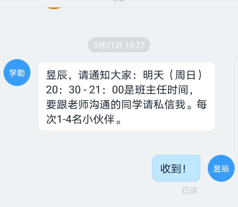 毛学勤老师每周课外通过“班主任时间”与学生保持沟通