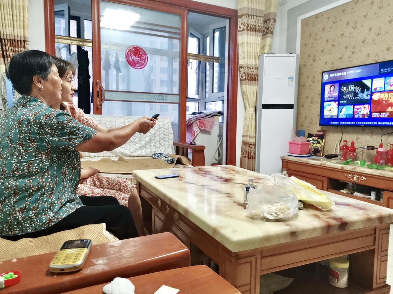实践队员手把手教老人使用智能电视