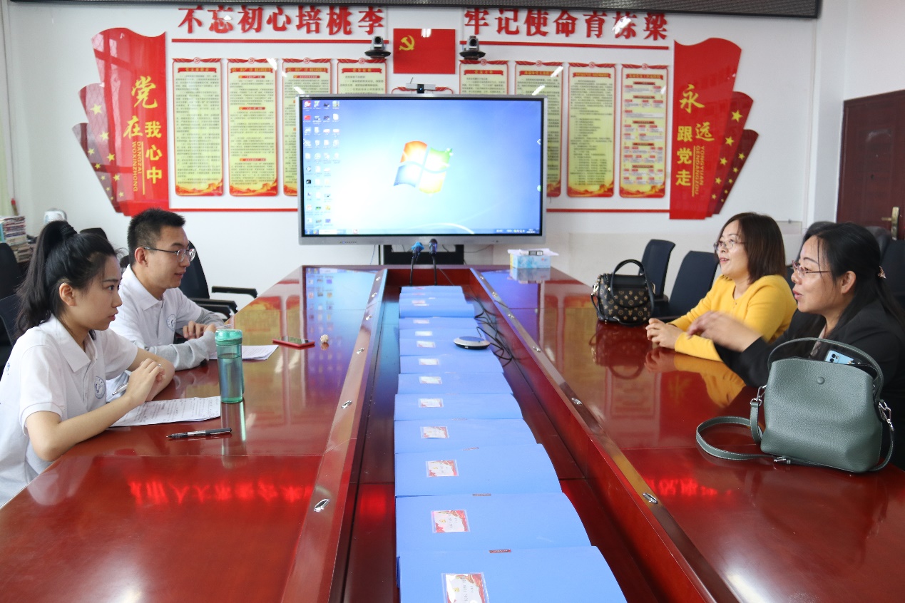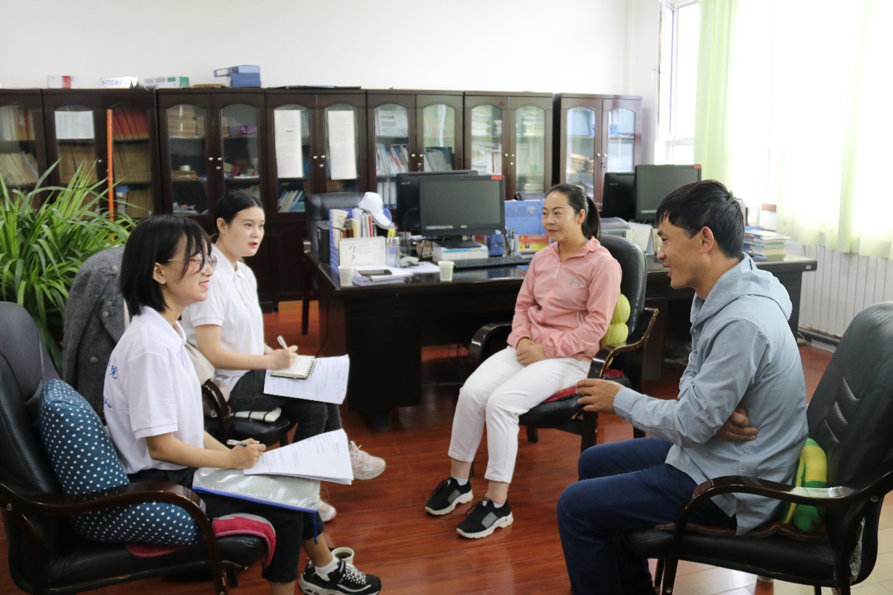 实践队与职教中心分管校长(左)、英语教研组组长(右)进行访谈