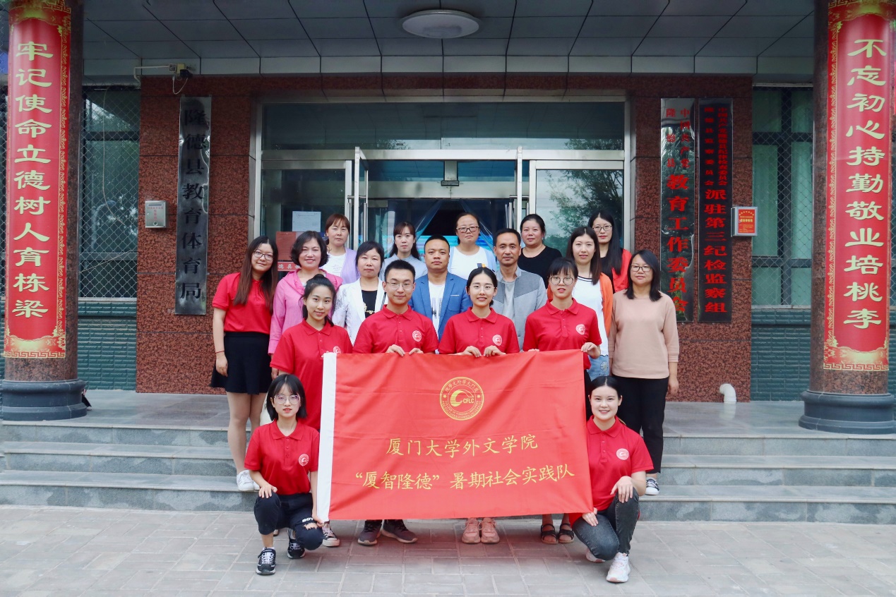 扶贫先扶志,扶贫必扶智。2020年是脱贫攻坚决战决胜之年,为深入贯彻落实习近平总书记在决战决胜脱贫攻坚座谈会上的重要讲话精神,助力贫困地区打赢脱贫攻坚战,厦门大学外文学院“厦智隆德”暑期社会实践队在学院党委副书记杨云良、外语教学部助理教授刘浩然和辅导员杨盛澜的带领下赴宁夏固原市隆德县开展社会实践。8月3日至4日,实践队深入走访调研英语师资情况和英语教育教学现状,并与隆德普通高中教育集团就外文学院定点扶贫工作方案进行了洽谈,进一步推动对口帮扶项目的落实。