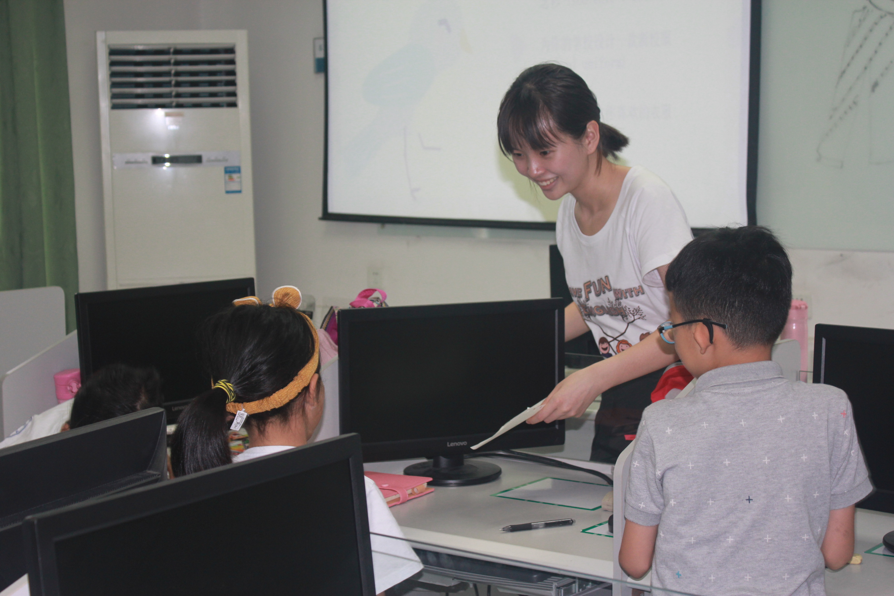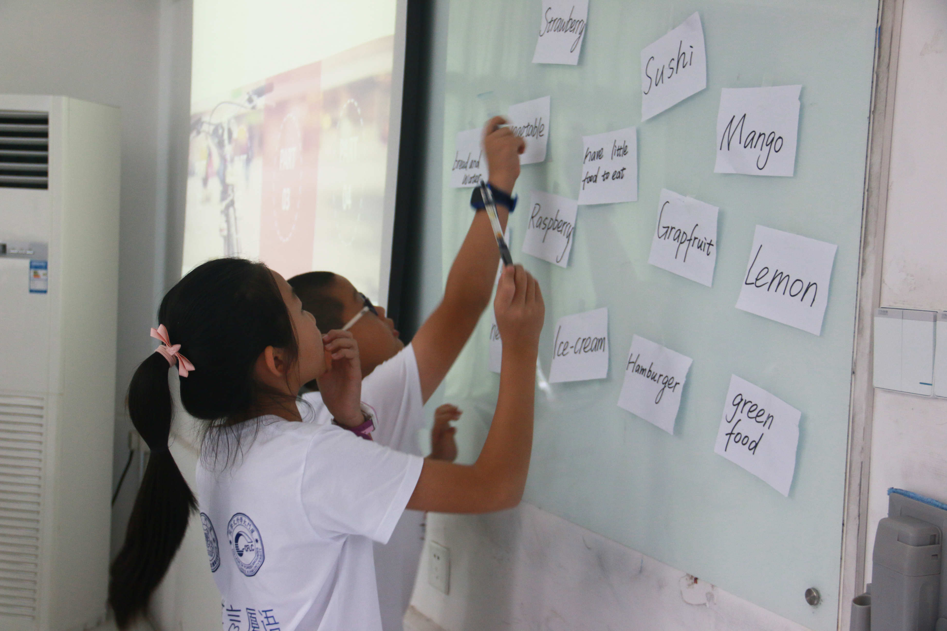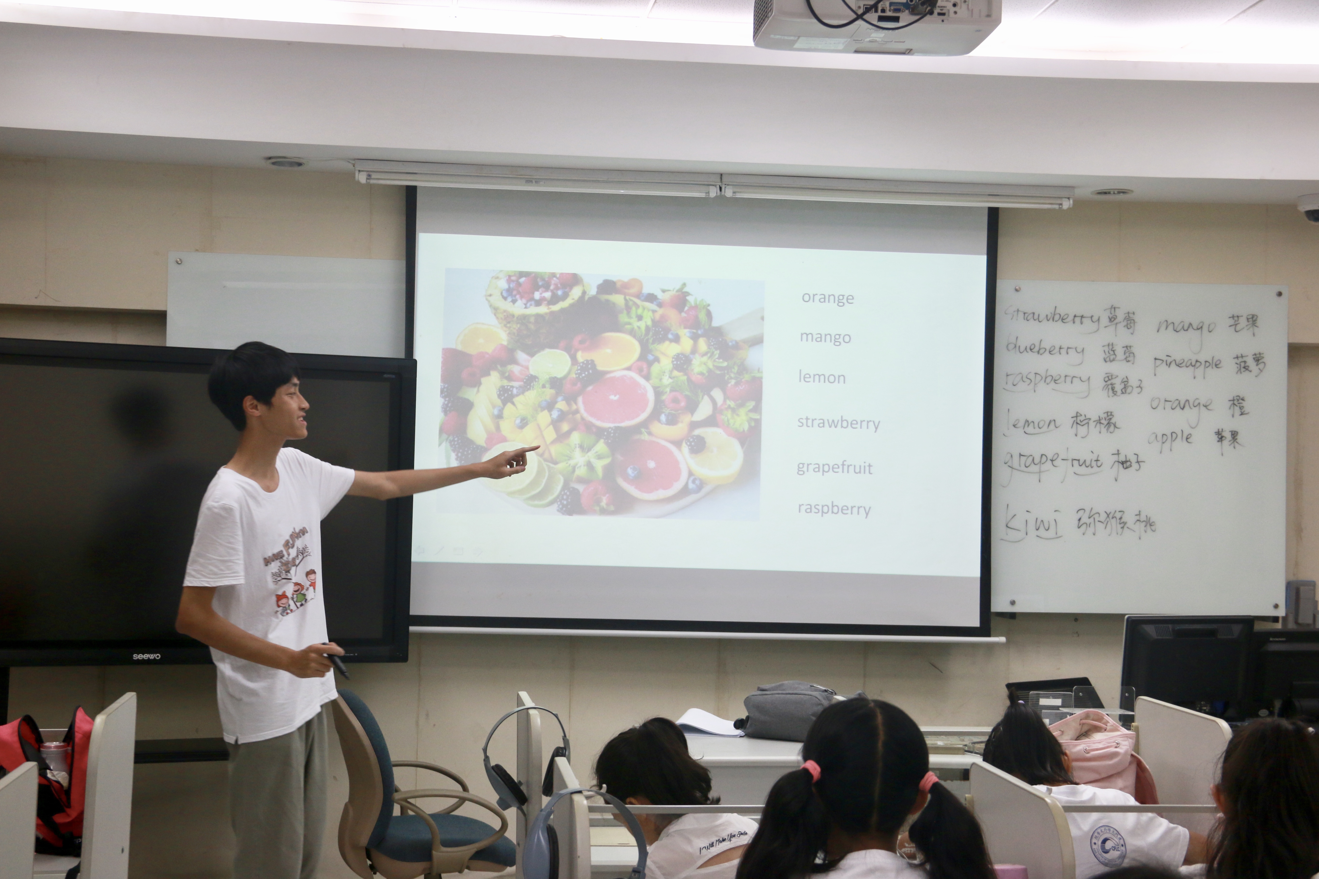 实践队员为营员们讲解单词