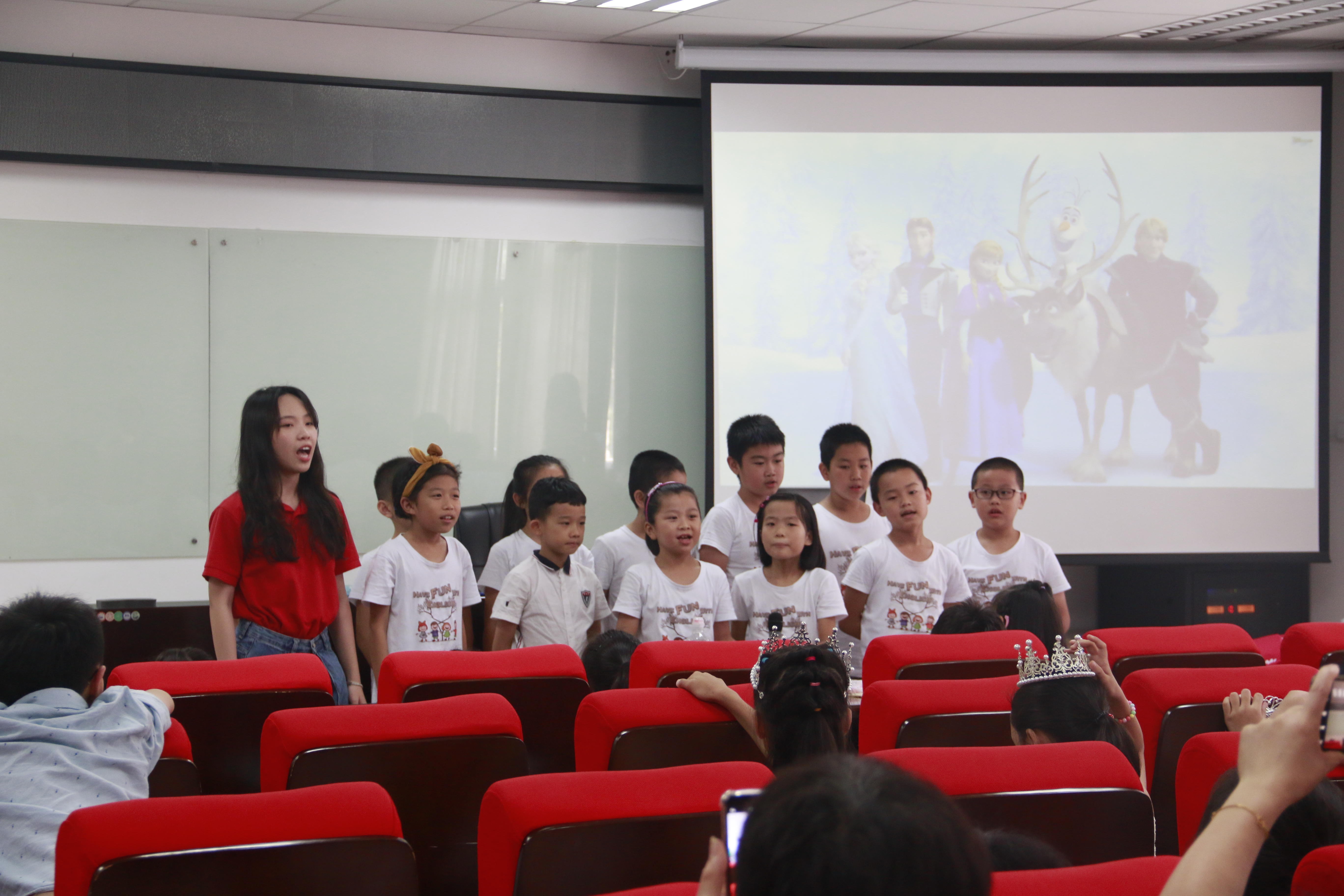 光影世界,魅力无限。在每日的观影环节中,实践队员们精心挑选贴合当日主题的影片,播放电影与讲解知识并行,让营员们在欢乐的氛围中感受异国文化,提高英语听说能力。