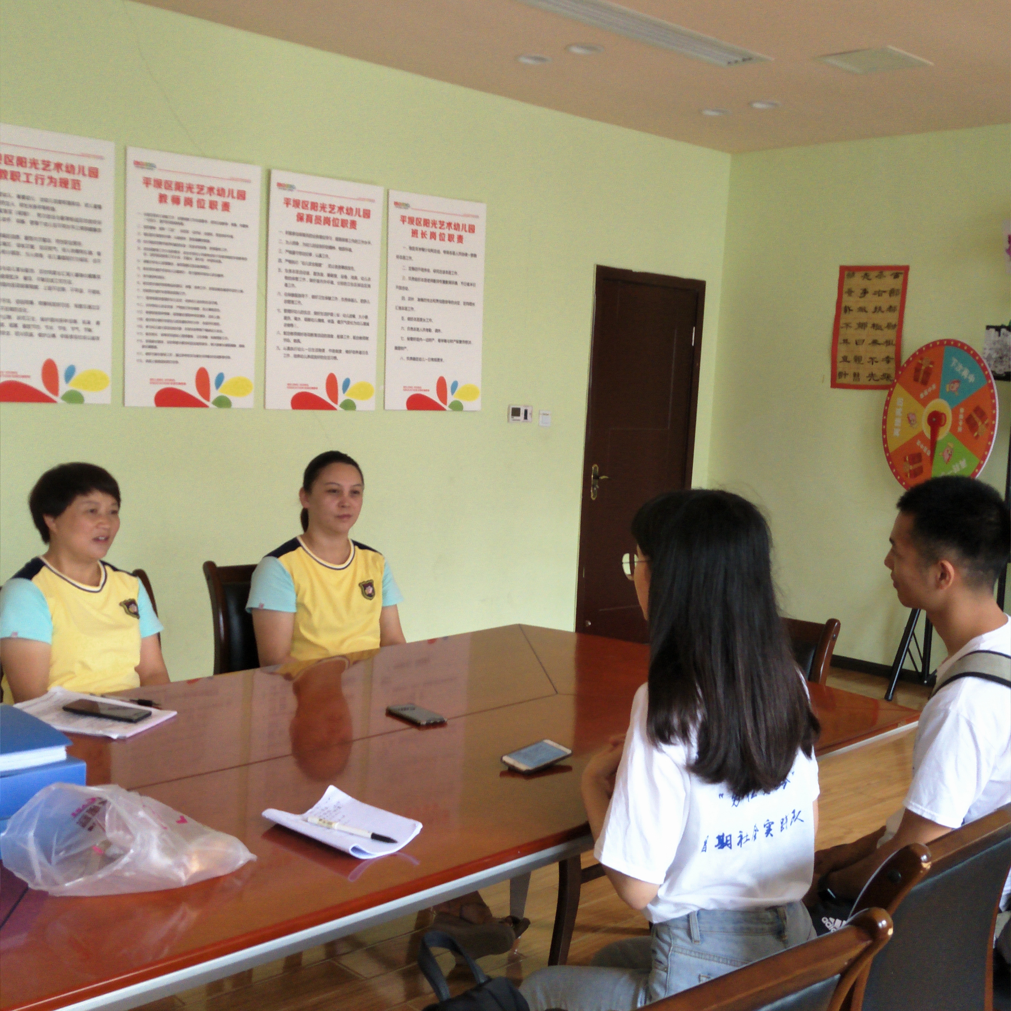 在采访过程中,两位幼儿园园长先后向实践队员详细介绍了幼儿园的师资队伍建设、课程设计以及安全管理现状。据了解,目前幼儿园发展良好,但由于私立幼儿园教师存在无编制、无退休金及其他福利待遇较低的问题,导致教师流动性极大,严重影响到了教师队伍的稳定性,而在这方面能得到的扶贫政策支持也还不够全面、系统。