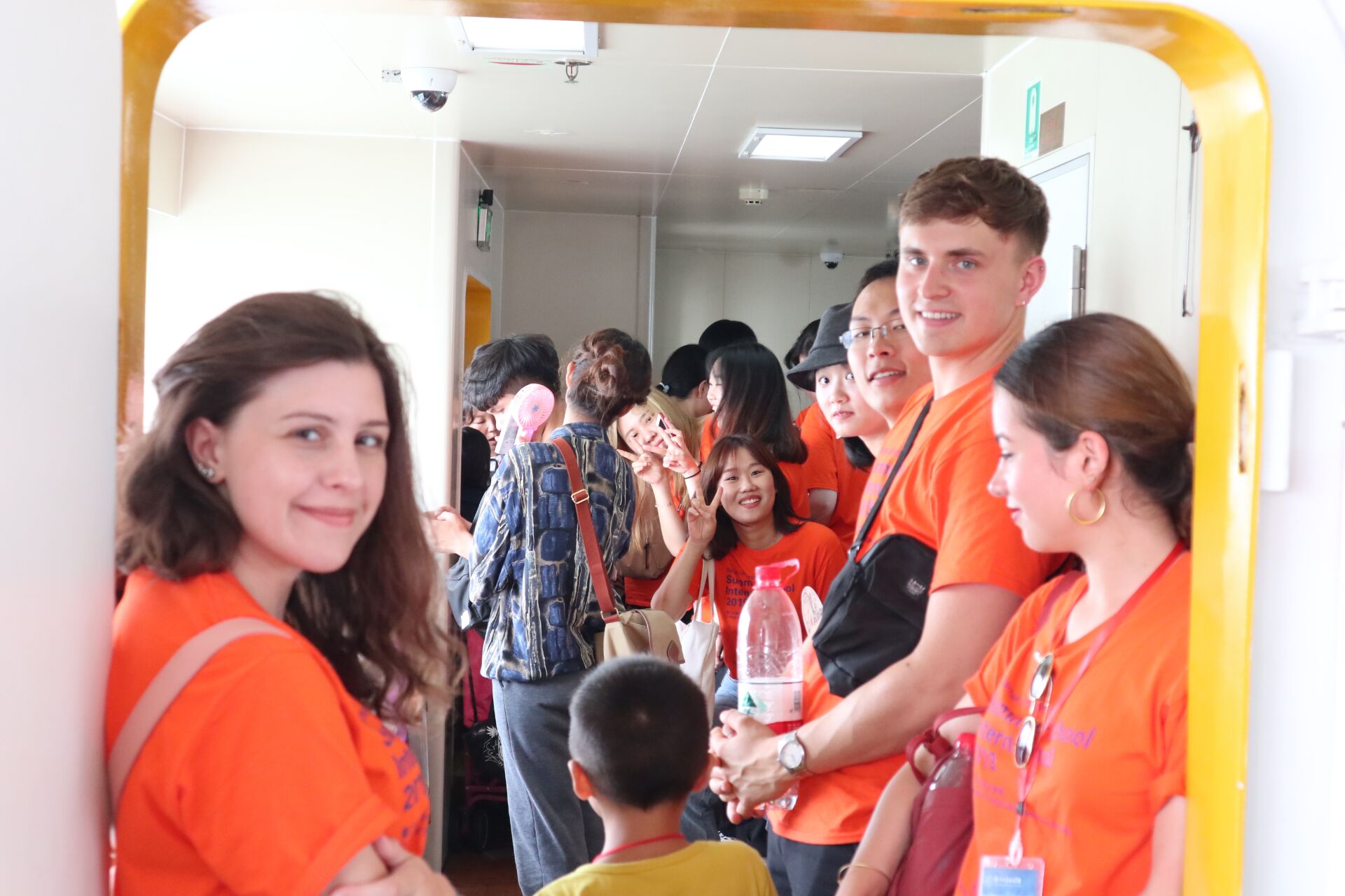 7月11日下午,中外营员一道来到鼓浪屿,中国营员担任外国营员向导,营员们一起聆听钢琴博物馆的琴声,欣赏“万国建筑博物馆”的神韵,品尝街边风味小吃的美味,领略世界文化遗产的魅力。