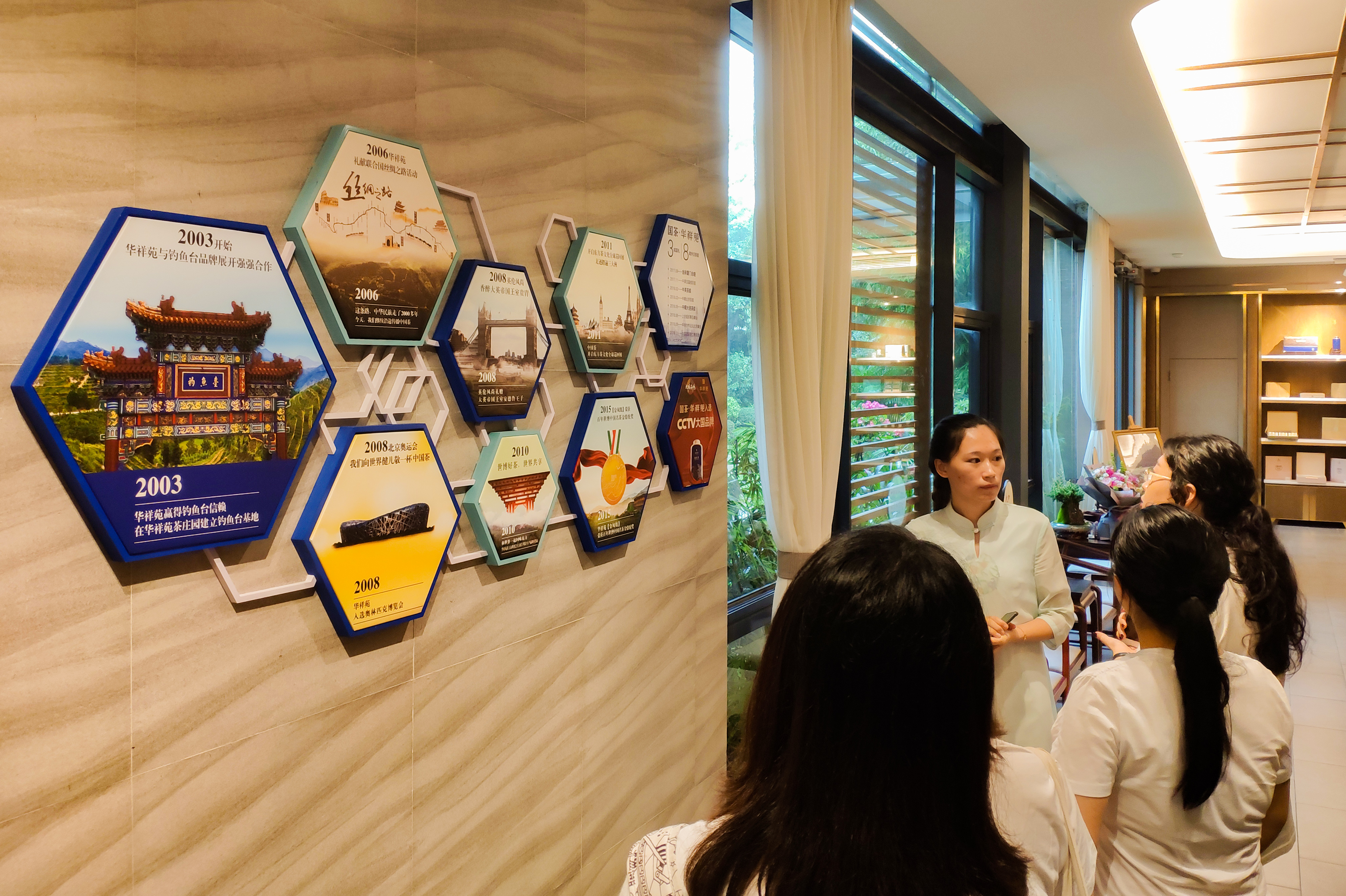 “一带一路”倡议不仅为传统老牌企业注入了新的发展活力,更为新兴企业带来了重要的发展机遇。为探索新兴茶企如何在“一带一路”倡议背景下推动闽茶走出国门,实践队员们前往厦门市华祥苑儒士馆,调研新兴企业华祥苑的发展经验。随着“一带一路”合作倡议的提出,国际合作愈发密切,华祥苑抓住时代契机,从金砖茶叙启航,成功将旗下“国宾茶”推向重大外交场合。华祥苑着眼于外交活动对于茶叶的需求,不断推出融合中外特色的茶叶产品,从而在激烈竞争中脱颖而出,其产品多次作为国礼被赠予外宾,让闽茶在世界舞台大放异彩。匠心巧思,独辟蹊径,“华祥苑”三个字逐渐成为了高标准、高质量的代名词,也为“闽茶”的国际化推广开辟了道路。