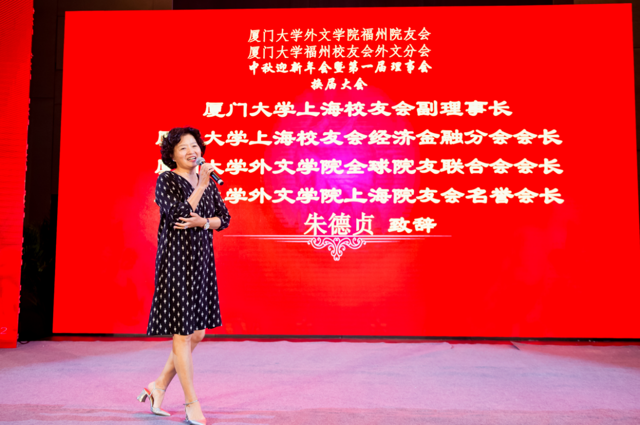 厦大外文院友全球联合会会长、朱德贞会长专程到会祝贺。她在致辞中充分肯定了本次大会的组织工作和福州院友会成立以来开展的各项工作,希望广大厦大外文人守望相助,祝愿外文的明天会更好!