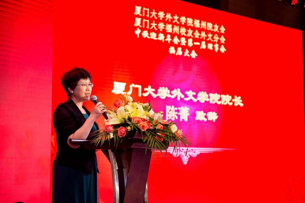 厦大外文学院陈菁院长致辞。她介绍了最近几年来外文学院在学科建设、人才培养等方面取得的巨大进步,特别是外文学院在业界获得的口碑和声誉。她表示,外文学院的发展和声誉,跟广大外文院友的努力是分不开的,她对外文院友这个优秀、有才华、有情义的群体感到自豪和感动。