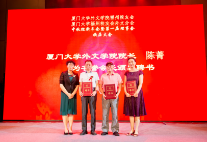9月22日,在美丽的闽江之滨,融侨皇冠假日酒店,2019年厦门大学外文学院福州院友会中秋迎新年会暨第一届理事会换届大会成功举办。本次年会和换届大会的主题是“八月缘聚桂华皓映 三载届满岁月长情。”在榕的院友及领导嘉宾140多人参加了本次盛会,外文学院党委书记陈志伟、院长陈菁、外文学院副院长徐琪、苏欲晓教授和张欣老师,福州校友会副会长兼秘书长余少谦、副会长兼女校友分会会长林冰,外文学院全球院友联合会会长朱德贞、部分省外和厦门院友会会长以及各地院友代表莅临指导。