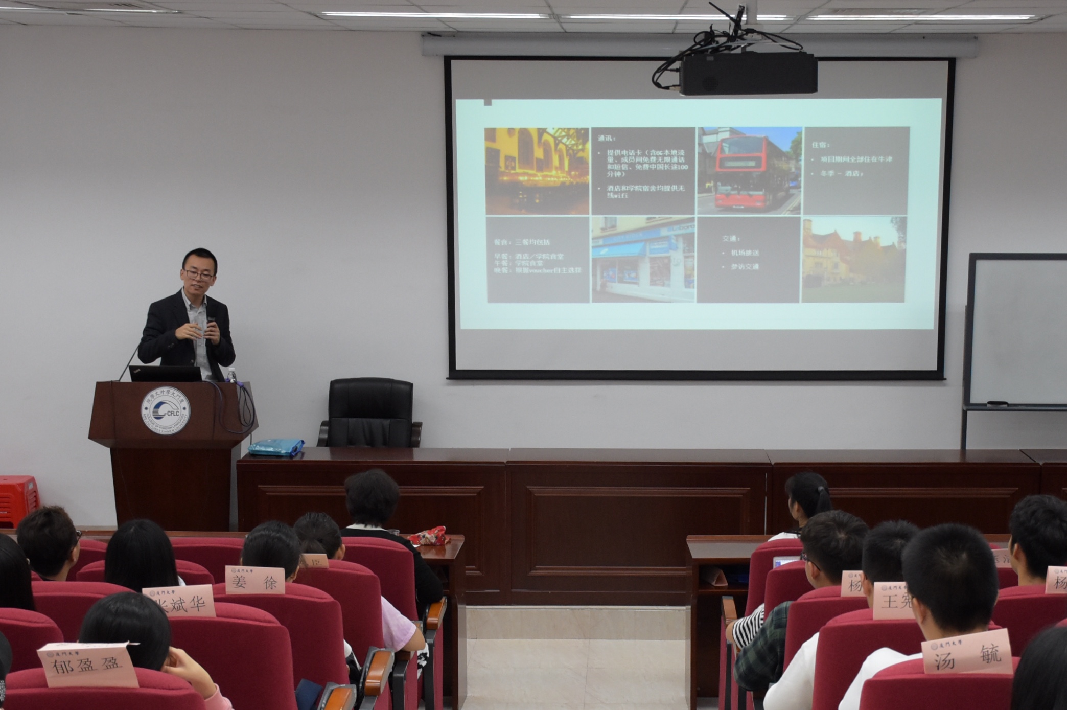 随后,陆博士对牛津大学的教学制度、交流项目等方面展开详细介绍。从他的分享中,同学们了解到,牛津大学在2016-2017学年首次对中国数十所顶尖院校开放为期一年的访问生项目,目前已经成功招录四届学生。该项目的注册访问生在享受牛津大学丰富学习资源的同时,也将感受到其最具特色的tutorial(导师辅导制),即导师每周会对学生进行撰写论文等一对一的交流辅导。因此,对于同学们来说,这会是一次不可多得的学习、拓展、交流的机会,能够有效提高学术能力与专业素养。