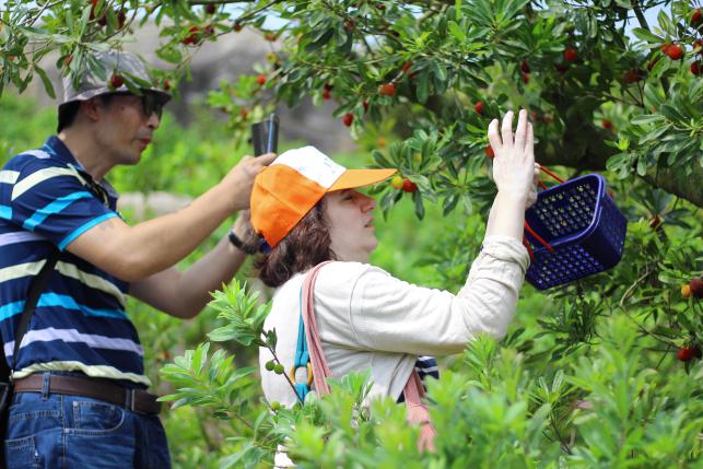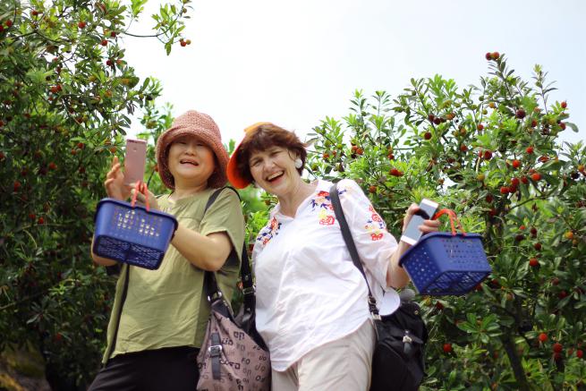 午餐后,大家驱车前往第二站----龙海浮宫镇,体验采摘杨梅的乐趣。所谓“梅子留酸软齿牙”,片片杨梅树枝繁叶茂,颗颗杨梅果挂满枝头。鲜红的杨梅在树梢你推我挤,好像在说“快来摘我呀”,使人忍不住伸手采摘,即刻品尝!老师们边吃边讨论着杨梅的酸甜回甘,孩子们穿梭在杨梅林里,急切地寻找着那颗“最大的杨梅”,大家有说有笑,其乐融融。短暂而开心的杨梅采摘结束后,大家无不意犹未尽,唇齿留“酸”!