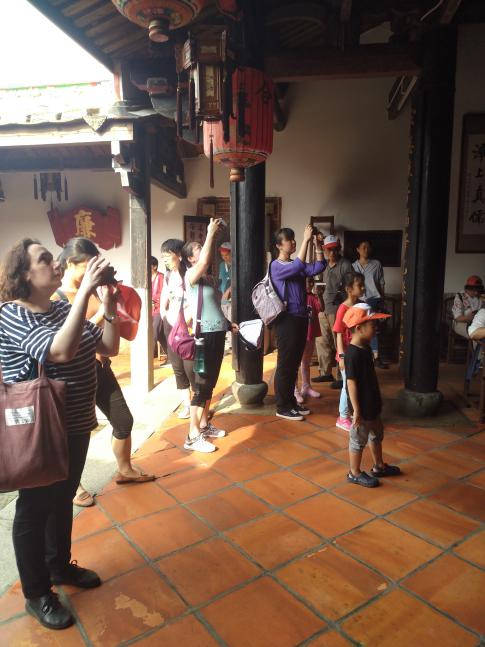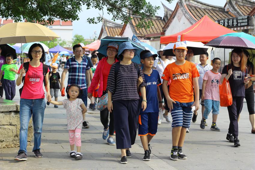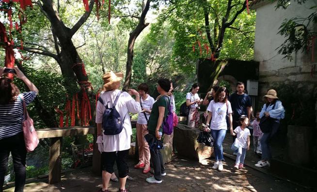 春游的第三站是素有“闽南第一村”、“水上周庄”美誉的埭美水上古民居。在导游的带领下,大家漫步踱过石桥,欣赏着古老的闽南韵味。放眼望去,一排排“闽南红砖建筑群”如同一副副美如仙境的画卷。古村依山傍水,四面环河,古榕遍地。水上小舟可环绕民居而行,流水潺潺令人不禁神往。据导游介绍,从村头到村尾,每一栋房子的通道都连在一起,如遇雨天,行人也不会被雨水淋到。大家一边感叹着巧妙精湛的房屋设计,一边享受着榕树下品茶的惬意。古村落带来的宁静祥和,使人颇有置身“世外桃源”之感。