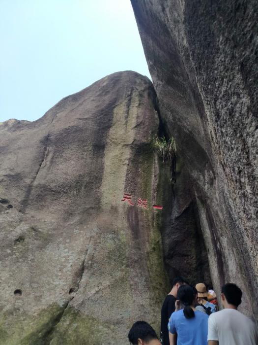 抬起头来,只见崖顶裂开一线,仿佛被利斧劈开一样,长数丈,心中不禁有一种“鬼斧神工劈山崖,岩洞一线冲天开”的感慨!名副其实的“一线天”啊,大自然果真是神奇的造物主!