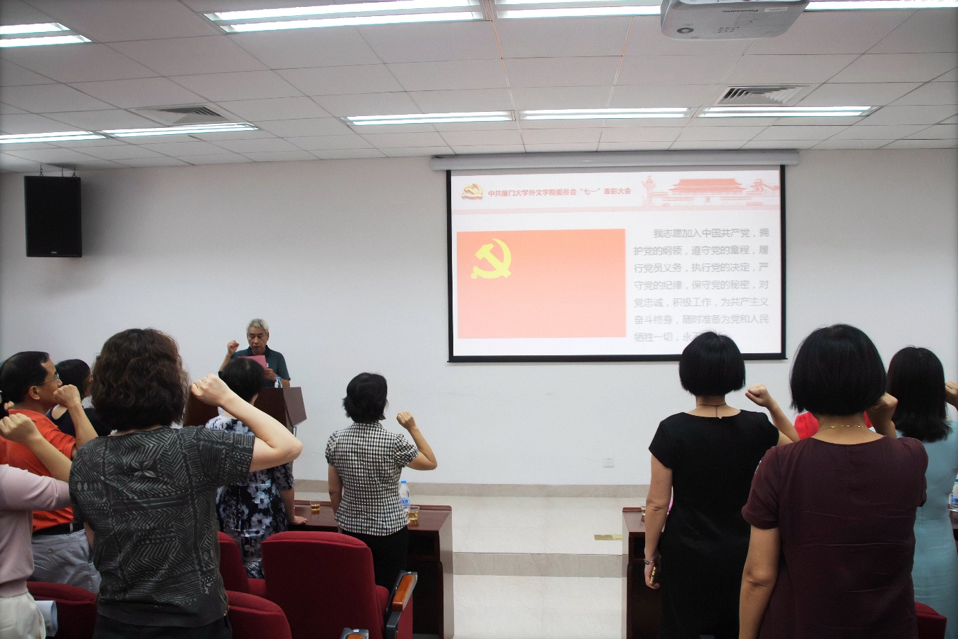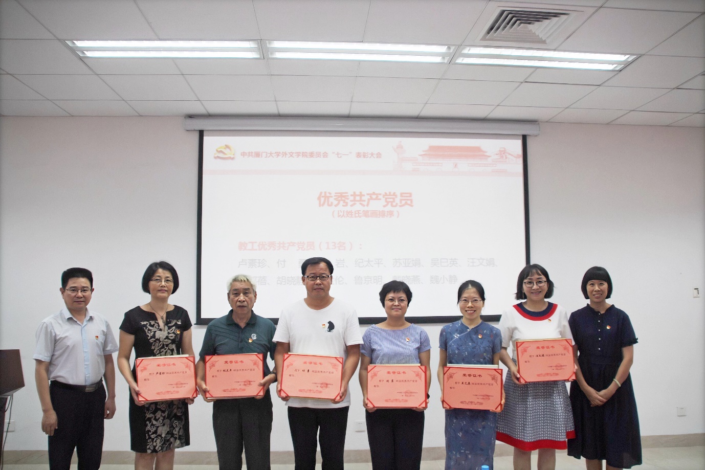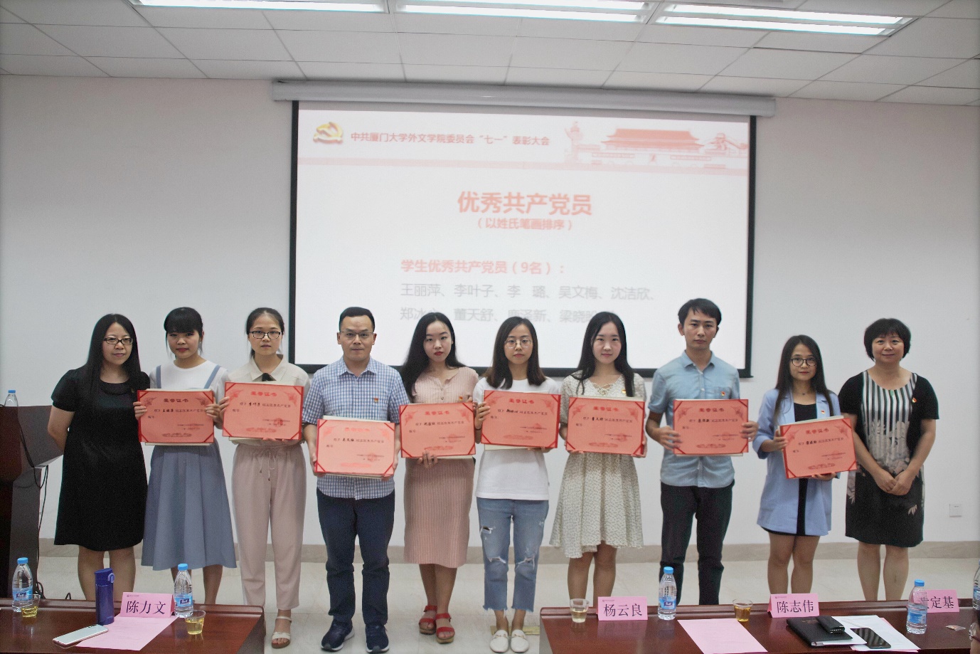 7月10日下午,为庆祝中国共产党成立98周年,同时表彰先进、鼓舞干劲,激励和引导广大党员学习先进典型、牢记党员使命,中共厦门大学外文学院委员会“七一”表彰大会在南光三112报告厅隆重举行。厦门大学关工委主任陈力文,外文学院党委书记陈志伟,院长陈菁,党委副书记杨云良、沈丽秀,党委委员、副院长徐琪、辛志英,党委委员顾鸿飞、戴鸿斌、乐无恙,学院关工委常务副主任纪太平出席了本次大会。学院党委陈志伟书记在会上发表讲话。大会由杨云良副书记主持。