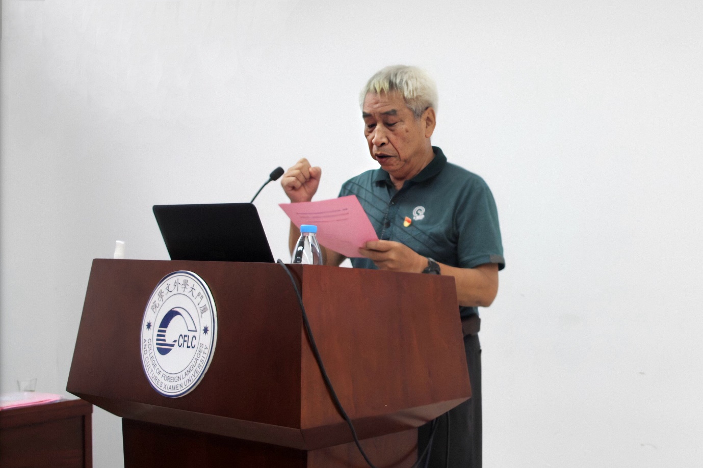 表彰大会在《国际歌》中圆满落下帷幕。表彰大会前,学院党委“红色外文大讲坛”邀请到原厦门大学南洋研究院/国际关系学院院长、特聘教授、学校理论报告员庄国土为全体党员带来题为《中美贸易战:特朗普时期中美战略新博弈》的讲座。庄国土教授介绍了中美贸易战的脉络及最新战况,阐释了经济全球化形势下中国的崛起与发展,帮助在座的外语专业师生党员进一步理解了党的十九大以来我国的外交政策和当前我们所面临的世界“百年未有之大变局”,激励广大师生党员自觉以维护国家主权、安全、发展利益,讲好中国故事、传播中国声音为己任,为实现中华民族伟大复兴的中国梦、为推动构建人类命运共同体的崇高事业不懈奋斗。