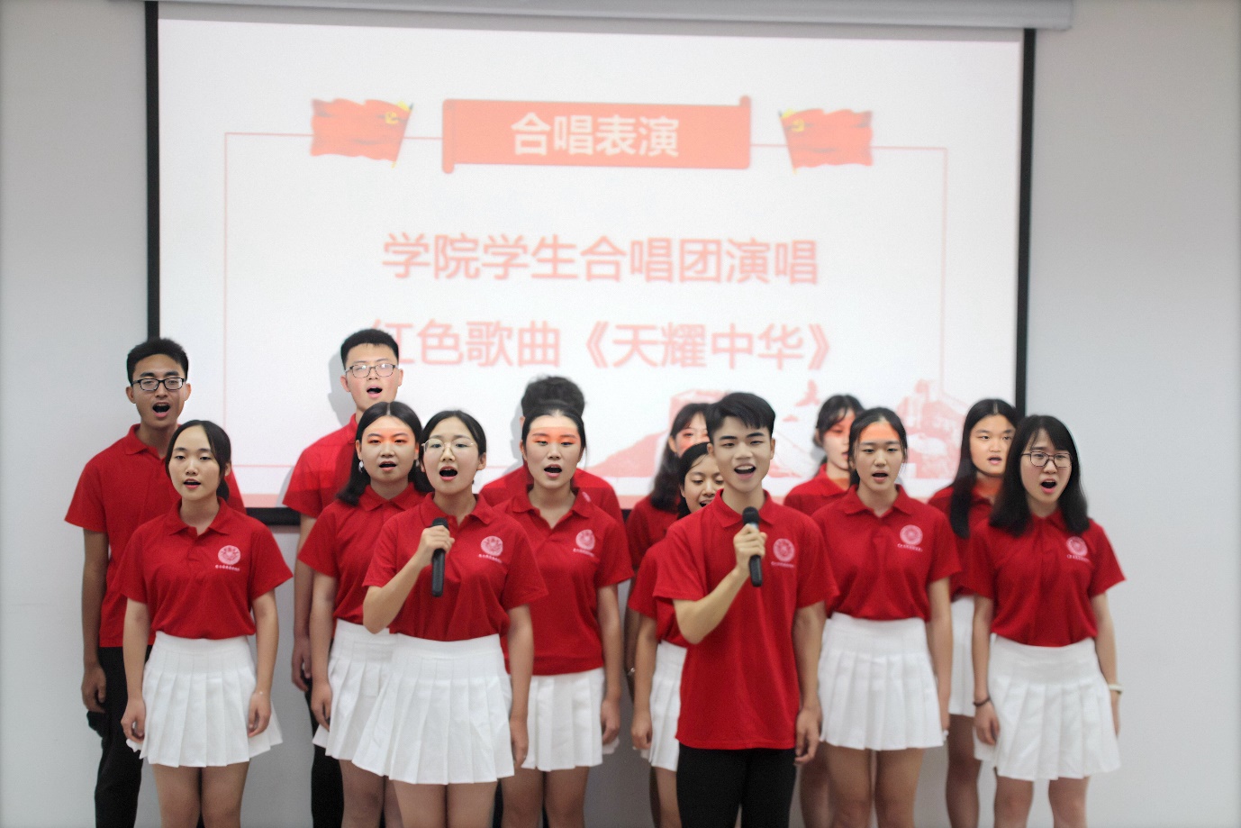 大会开始前,外文学院合唱团带来了合唱表演,以一首《天耀中华》抒发了心怀祖国、与党同心的满腔热忱。随后,大会在庄严的国歌声中拉开了序幕。