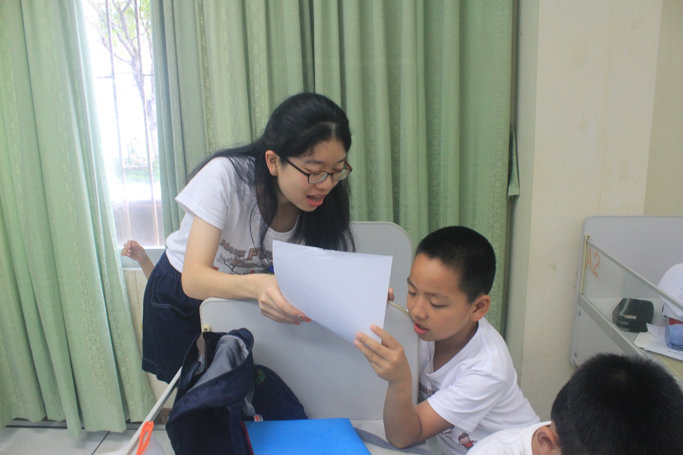 为了提高营员们对课程的接受度和参与度,实践队员们根据营员的年龄大小与英语水平,有针对性地设计课堂内容和教学形式。为了帮助营员们更好地巩固前四日所学,负责低年级教学的实践队员们将新课与复习相结合,在教授新知识点的同时,穿插对已学内容的提问与检查;并通过开展“你画我猜”、“单词抢答”、“Hangman”等趣味游戏,在欢笑声中加深营员们对单词与句式的印象,真正实现了玩中学,学中乐,乐有所获。