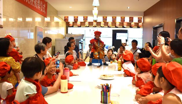 俗话说得好,“人多力量大”。转眼间,蛋糕胚就做好了,入器皿,送烤箱。在等待见证奇迹的时间里,小朋友们竞相展示才艺。有的表演大提琴独奏,有的化身成故事大王,博得一众喝彩与赞誉。