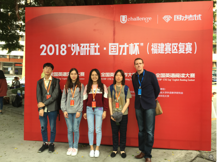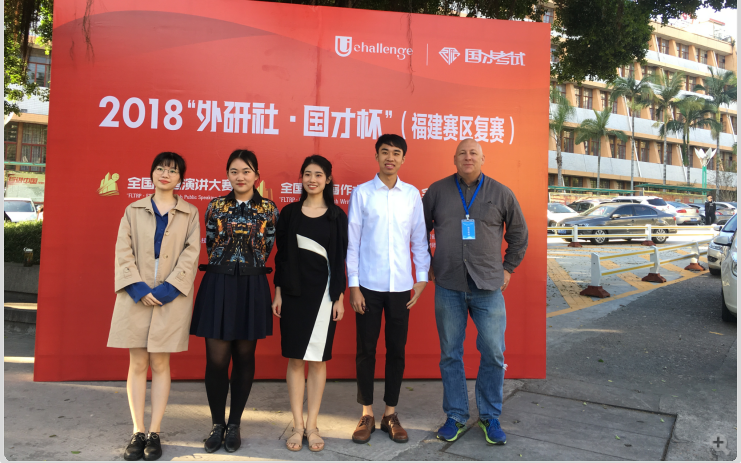 2018年“外研社·国才杯”英语挑战赛福建赛区复赛于1027-28日在福建师范大学举办。我校派出经校内遴选脱颖而出的十二位优秀选手,参加了演讲、写作和阅读三项比赛,每项比赛有四人参加。外文学院外语教学部负责此次比赛的组织和选拔,此项赛事得到教务处的经费支持。William John HildebrandtJasen Grant分别担任演讲队和写作阅读队教练。本次比赛我校选手表现优异,共有五位选手成功突围省赛,获得2018年“外研社·国才杯”英语挑战赛全国赛资格。