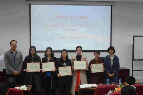 副书记沈丽秀、副院长吴光辉为优秀党政工作人员奖教金获得者颁发证书