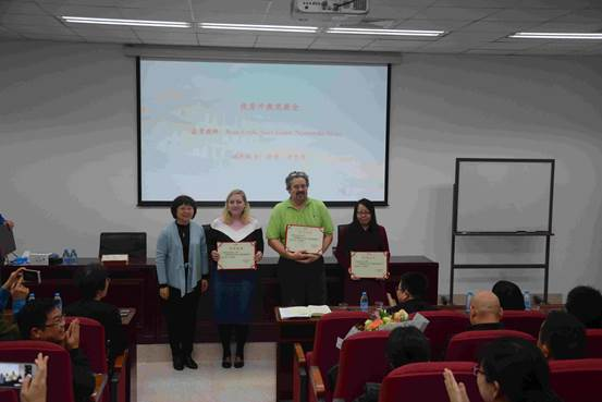 副院长徐琪、辛志英为优秀外教奖教金获得者颁发证书
