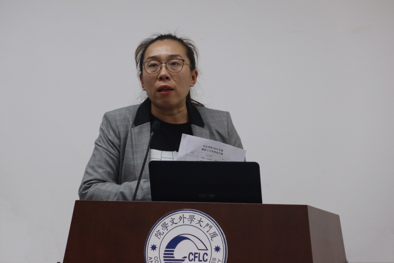 会上,陈菁院长首先作学院2018年度工作总结、2019年度工作计划报告及2018年度财务预决算报告和2019年度财务预算方案报告。报告中,陈院长充分肯定了上一届学院领导班子及全体教职员工对学院发展所作出的贡献,对教职员工的辛勤工作表示感谢。她表示,2018年是学院奋进和发展的一年,学院把牢政治方向、坚持立德树人,完成院系和工会换届,加强师德师风建设,打造高素质师资队伍,激发教师活力,严抓教学质量,不断提高教学科研水平,夯实学科基础,特别是在国家级科研申报立项方面取得了重大突破。