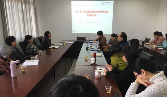 2019年1月22日上午,学院在524会议室召开外文学科发展暨第五轮学科评估筹备专题研讨会。陈志伟书记、陈菁院长、沈丽秀副书记、李美华副院长、徐琪副院长、辛志英副院长、吴光辉副院长,学院各系部负责人及教授委员会成员等20多人参加了会议,会议由陈菁院长主持。