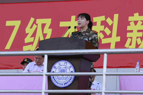 我是外文学院2017级英语专业的徐一楠,来自江苏南京。非常荣幸能作为2017级的新生代表在这里发言。首先,请允许我代表刚入学的同学们,以及我们的家长,对学校的领导、老师、学长学姐、后勤的叔叔阿姨表达由衷的感谢!是你们让游子在这里感受到了家的温暖,谢谢!也向“最可爱的人”——我们的教官们——致以崇高的敬意!