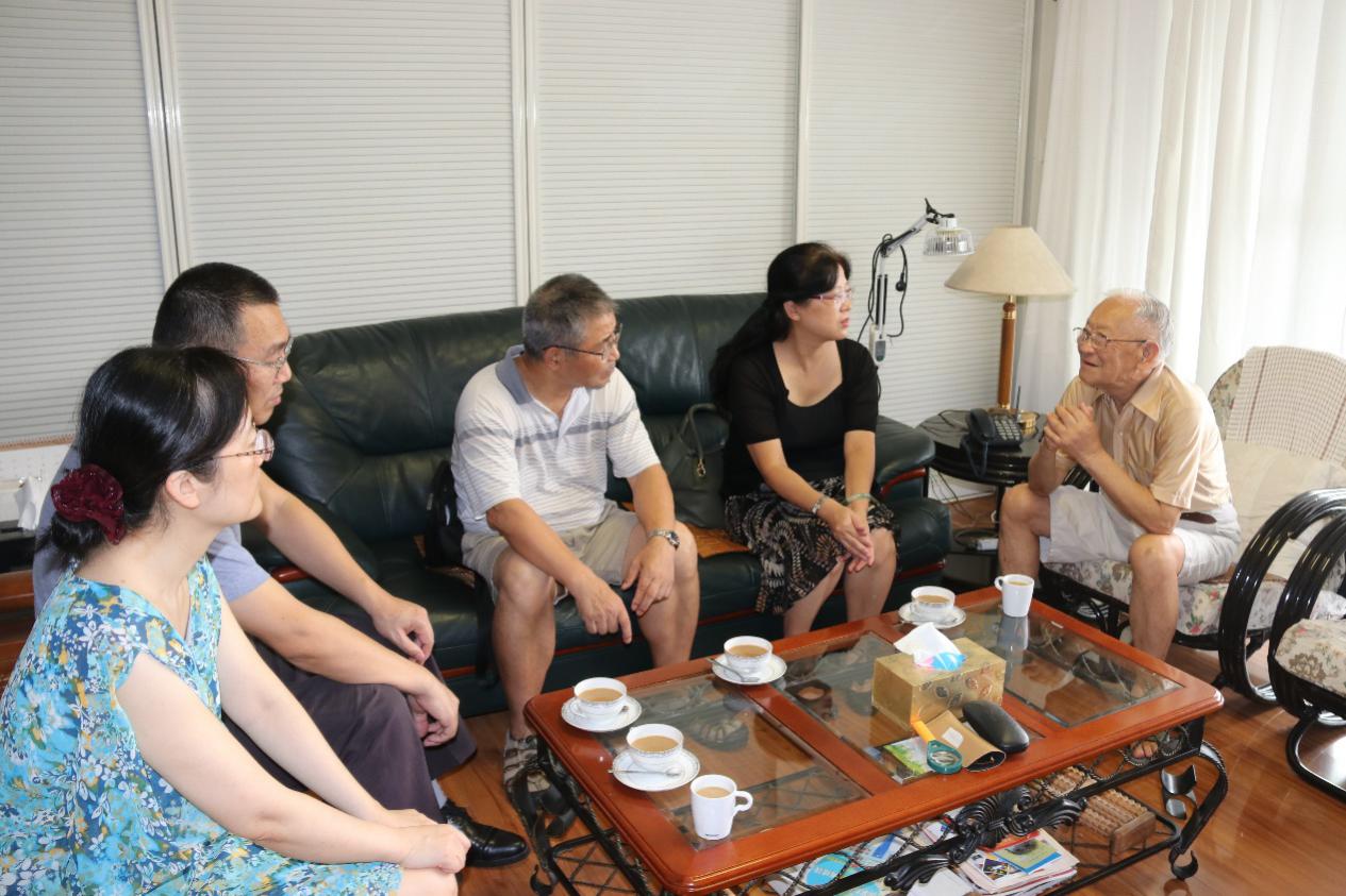 黄希哲老先生虽已90高寿,但身体硬朗、精神矍铄,与客人谈笑风生。从外文旧事到世界格局,黄老侃侃而谈,广博的学识和清晰的思路折服了在座的所有人。作为解放后厦大第一批毕业生,黄老1951年便留校开始了无私奉献的教师生涯,1990年退休后,他依然心系厦大心系外文,希望能为学校再尽一份力。此次老人提出希望能回学院举办讲座,继续传播知识的火种;希望能得到学院帮助,出版学术文献;希望能以亲历见证者的身份,为完善外文学院历史提供信息。陈书记表示,学院一定会倾力支持,实现黄老的愿望。