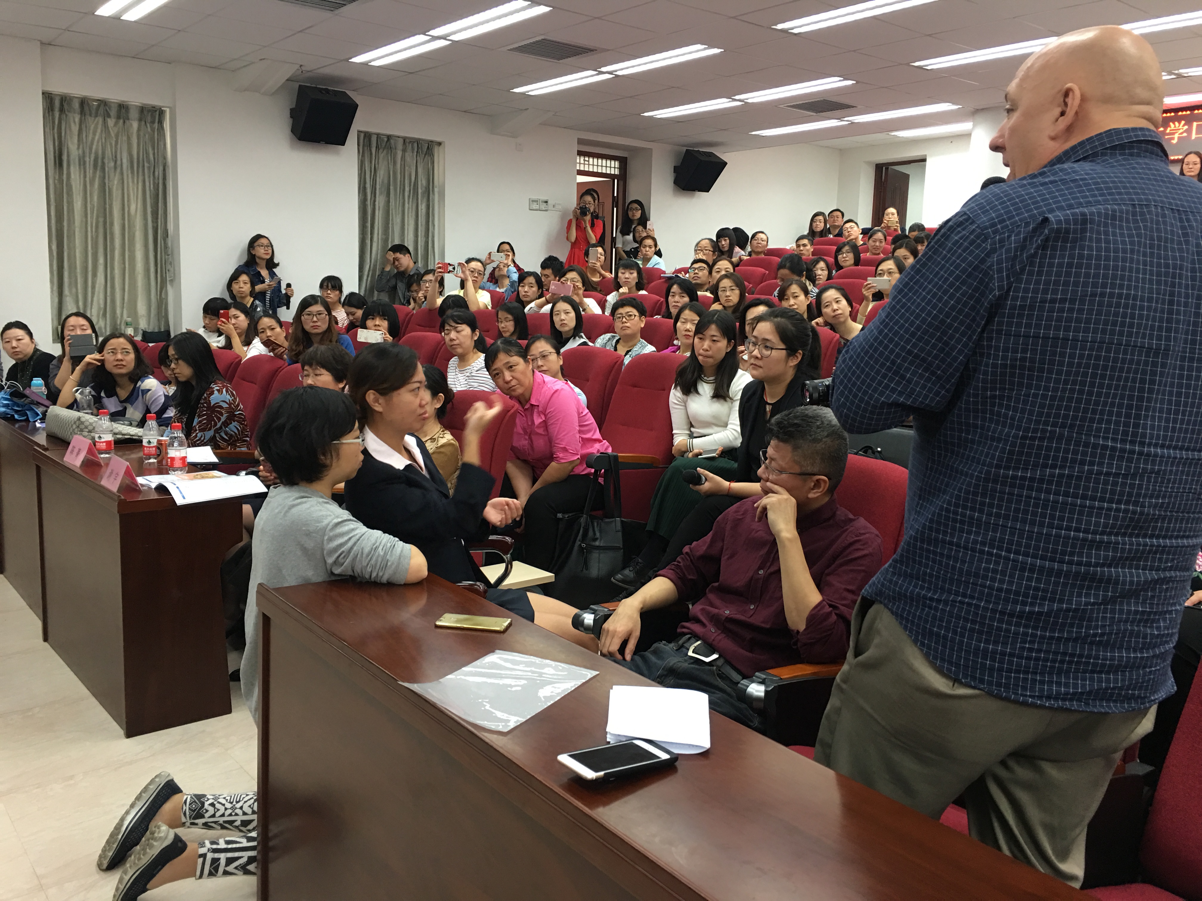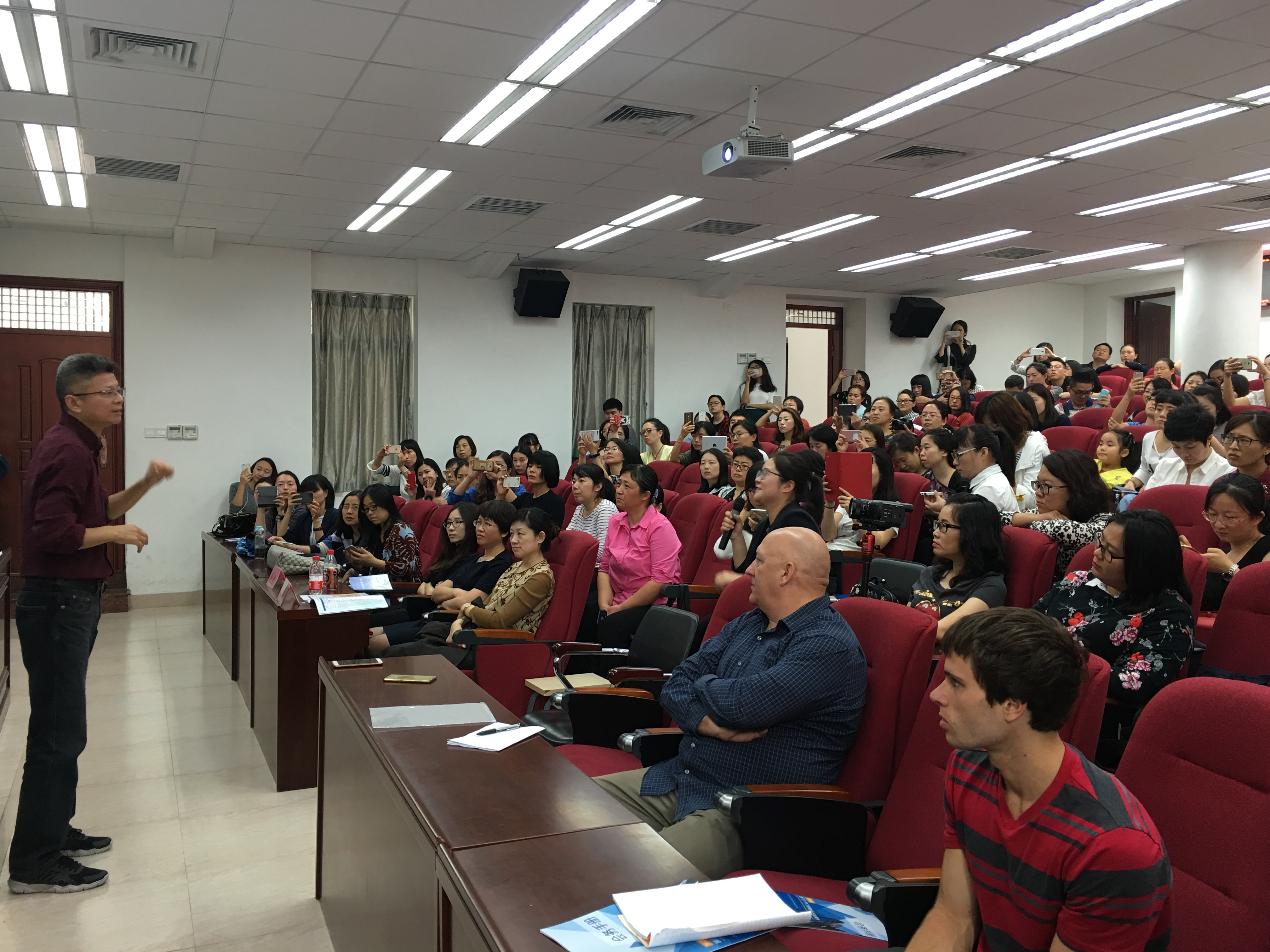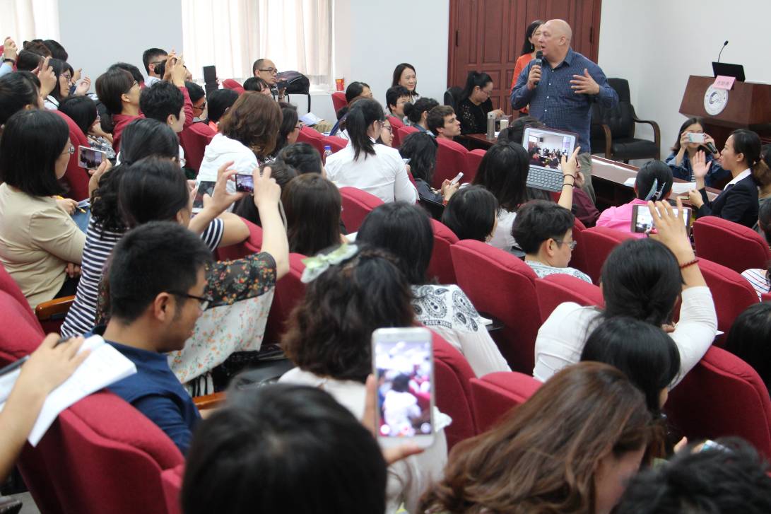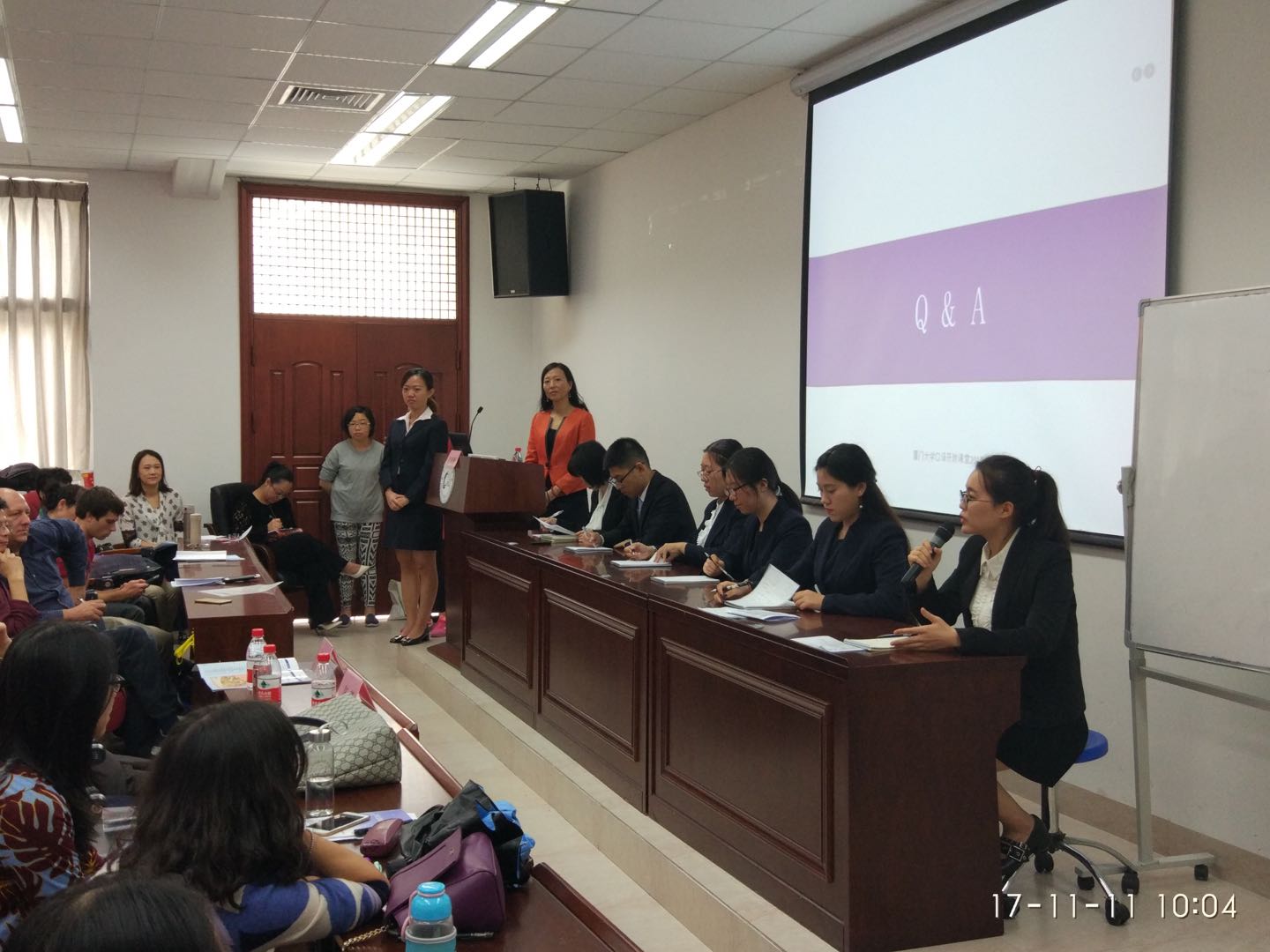 11月11日上午,由厦门大学口译研究所和上海外语教育出版社精心打造的第二届厦门大学口译开放课堂进入第二天的模拟口译会议教学展示环节。来自全国各高校近170位口译教师齐聚外文报告厅,欣赏了一场别开生面的模拟会议口译教学,并对外文口译学生的精彩表现以及他们和手语译员的完美配合点赞叫好!