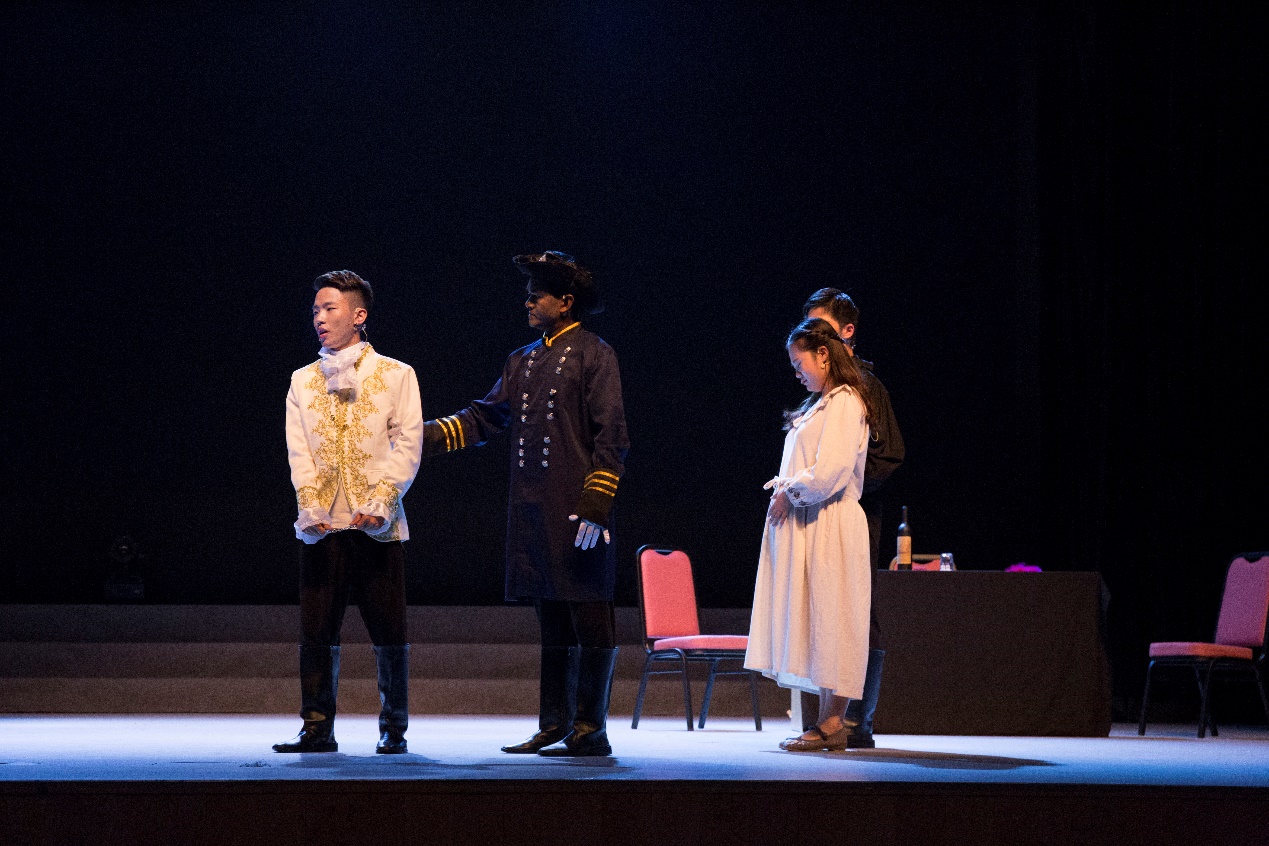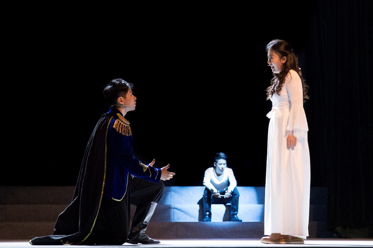 为了保障当晚两个半小时的演出顺利进行,剧组师生在过去八个多月的时间里坚持每日排练,周末更是放弃休息时间进行联排。莎士比亚剧本中精深但晦涩的台词为表演增加了难度,但得益于长时间的排练,演员们在演出当晚用纯正的口音和深情的吟诵完美还原了角色的长段对话和独白,共同打造出一台高质量的戏剧作品,展现出厦大学子不凡的英语水平和超群的人文素养。演员们结合自身理解对人物神态动作细致入微的临摹,则体现了他们对善与恶的评判、对人性和法制冲突的深刻思考。更让人眼前一亮的是,剧中庄肃的神父托马斯、张狂的死刑犯巴那迪以及油嘴滑舌的卢西奥均由女演员反串出演。对这些性格迥异的男性角色的完美展现,体现了演员们精湛的演技和对角色的深入理解。