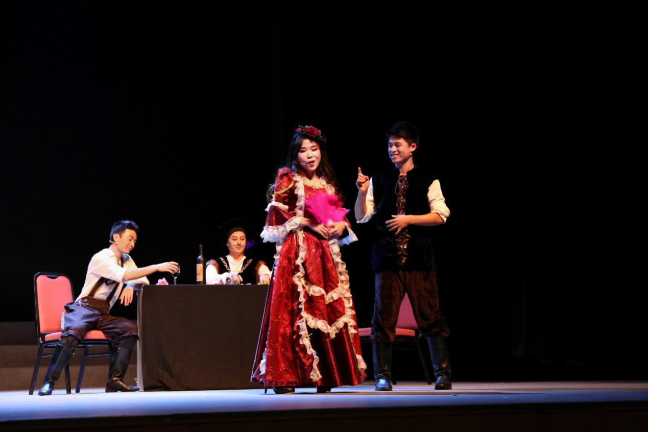 舞台上的演员们饱含深情、几乎忘我,台下观众们的心也一直随着剧情而跳动。时至精彩片段,观众们或发出爽朗的笑声,或情不自禁地鼓掌叫好,人群中还不时有人拿出手机拍照和录像,记录下演出的精彩瞬间。现场也有一些家长带着孩子前来观看本次演出,他们坦言,这样的外文戏剧表演对小孩来说确实比较难懂,但更重要的是希望孩子们借这个机会去感受原汁原味的经典艺术,多接触一些来自世界各地的丰富多彩的文化。